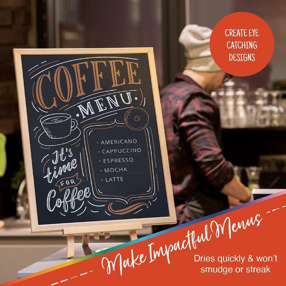 - Vibrant Colors: The liquid chalk markers for chalkboard signs come in 24 colors with 1 white chalk marker. They have 6mm reversible tips (round or chisel) to create different designs that extend the life of each neon dry erase marker