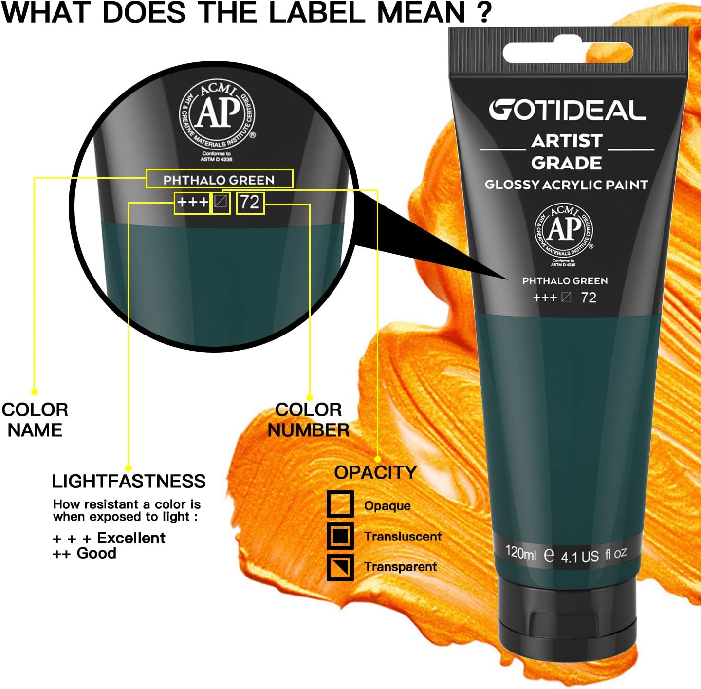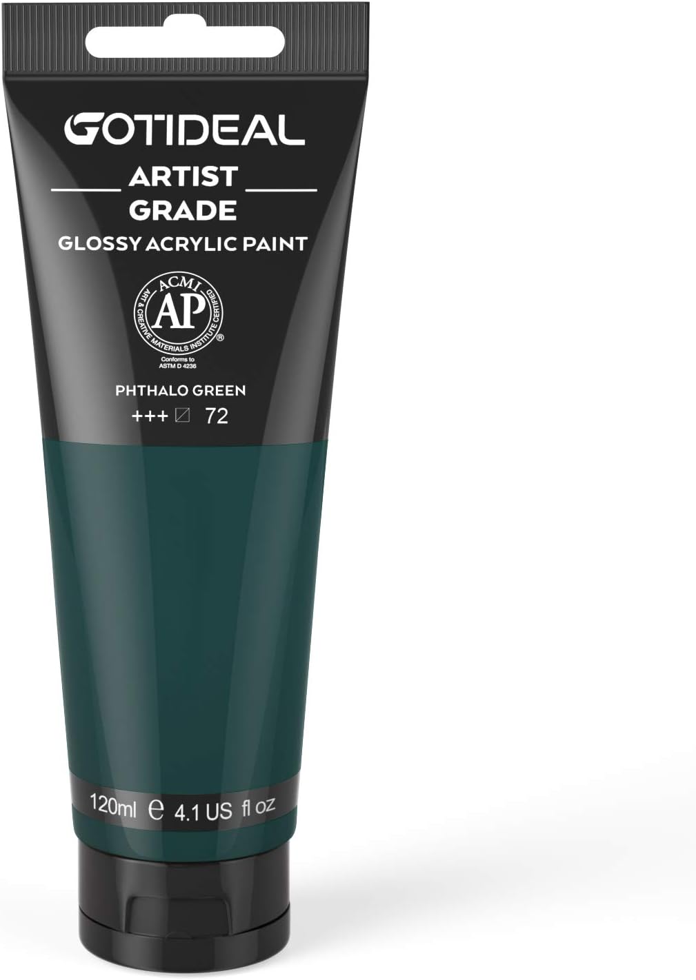 GOTIDEAL Acrylic Paint Phthalo Green Tubes(120ml, 4.1 oz) Non Toxic Non Fading,Rich Pigments for Painters, Adults & Kids, Ideal for Canvas Wood Clay Fabric Ceramic Craft Supplies (Phthalo Green)