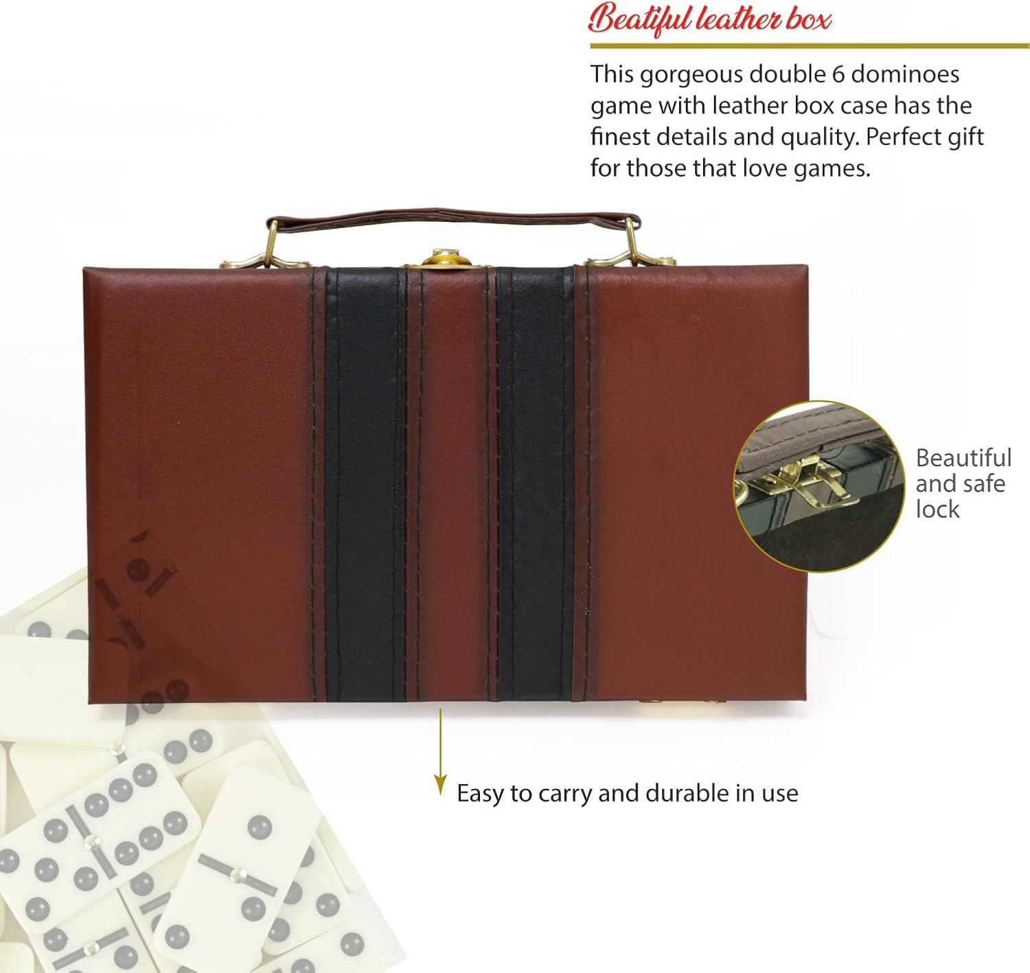 ERLLE - Premium Double 6 Dominoes Set, Classic Domino Game with Leather Case, Domino Set for Adults & Kids, Durable, Travel-Friendly, and Easy to Read Tiles
