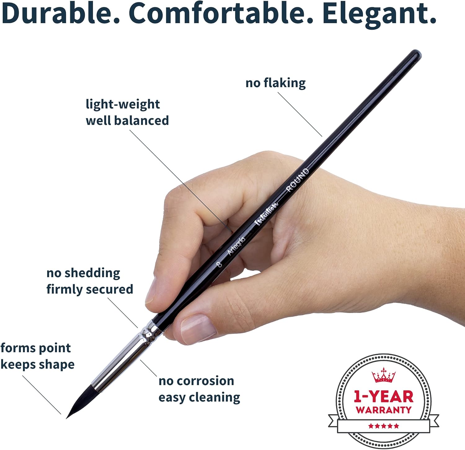 ARTEGRIA Watercolor Brush Set, 10 Professional Soft Synthetic Squirrel Paint Brushes, Including Pointed Rounds, Flats, Dagger, Oval Wash