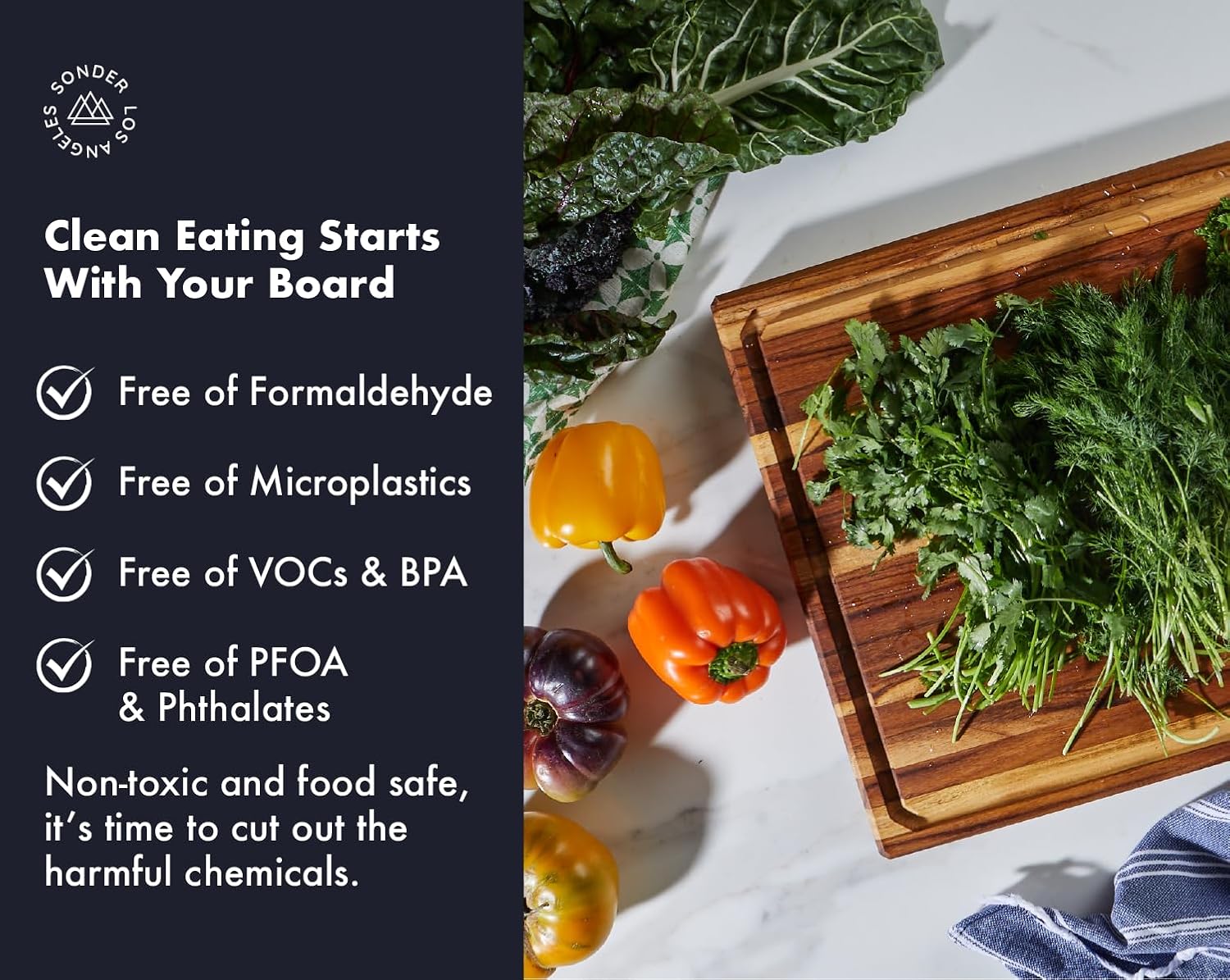 Sonder Los Angeles, XL Thick Teak Wood Cutting Board for Kitchen with Juice Groove, Sorting Compartments, Charcuterie Cheese Board 20x15x1.5 in (Gift Box Included)