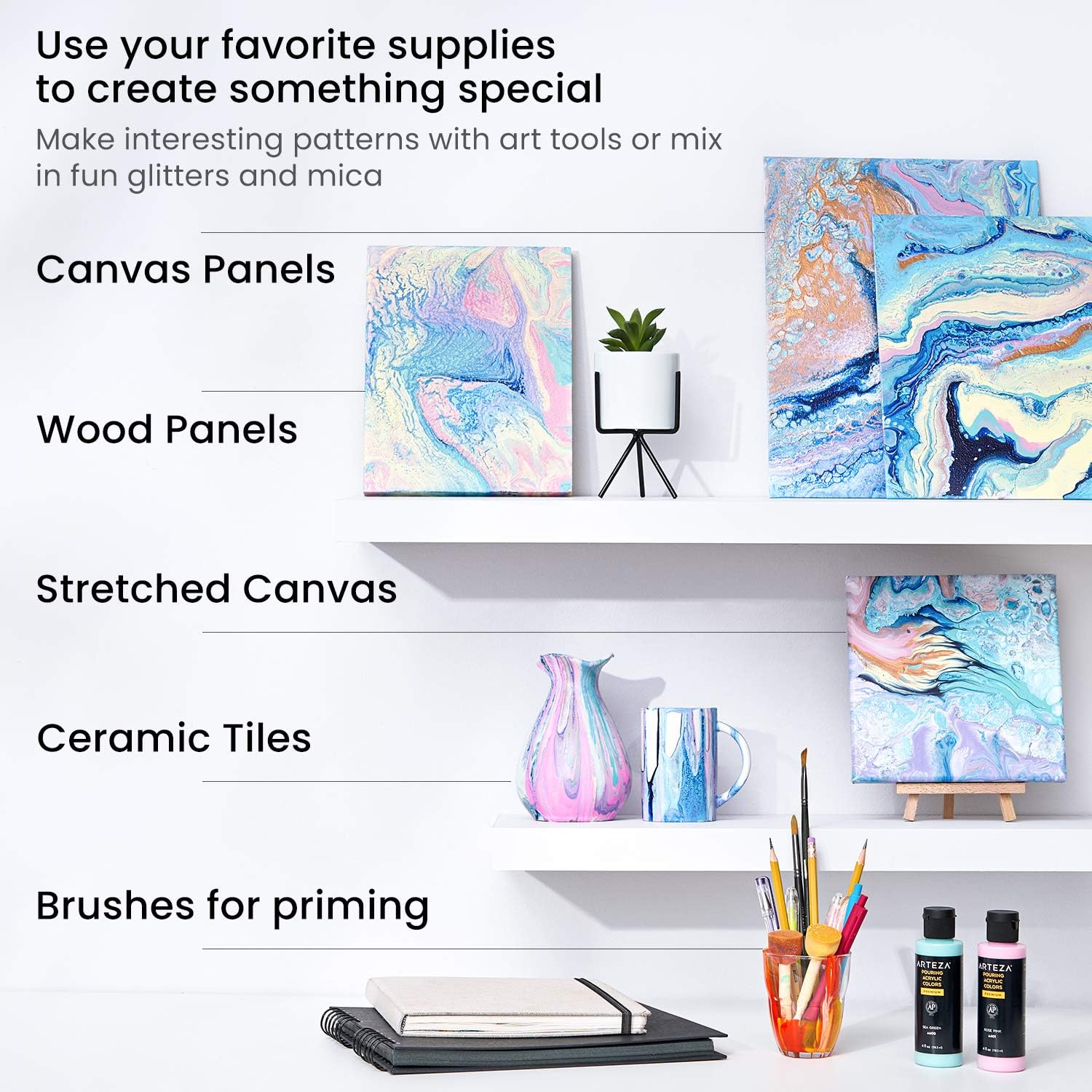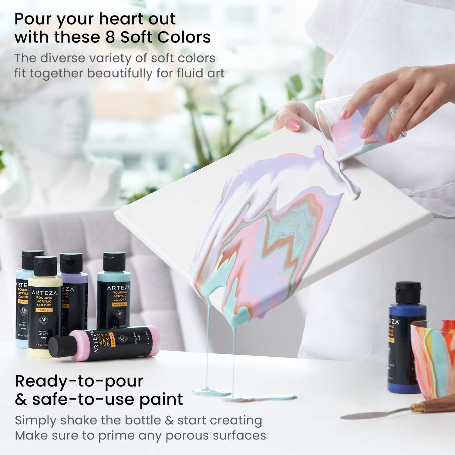 ARTEZA Acrylic Pouring Paint Set, 8 Pastel Colors, 4 oz Bottles, High-Flow Paint, No Mixing Needed, Art Supplies for Canvas, Glass, Paper, Wood, Tile, and Stones