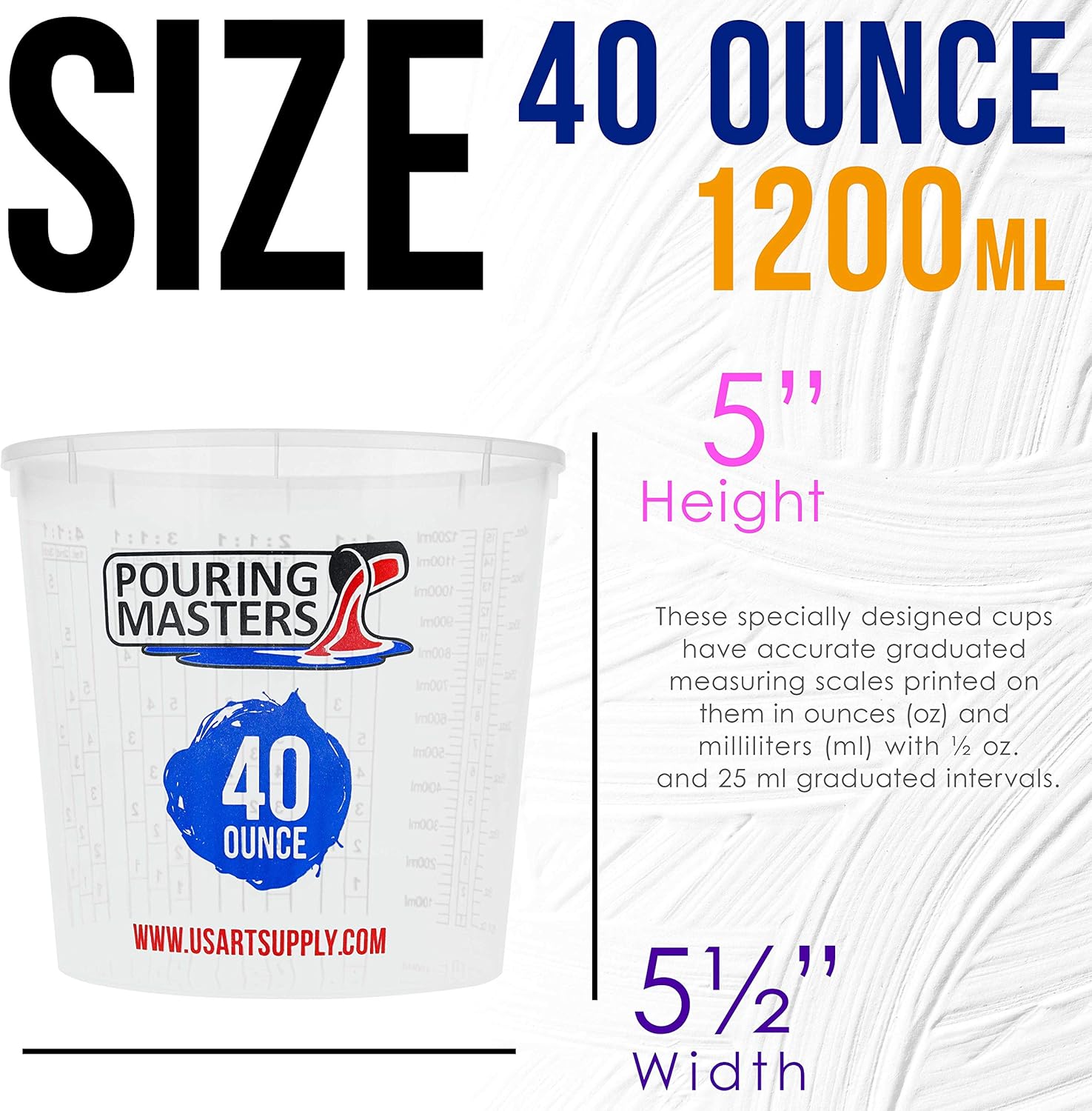 Pouring Masters 40 Ounce (1200ml) Graduated Plastic Mixing Cups (Box of 24) - Paint Mixing Cups for Epoxy Resin, Art, Kitchen, Baking - Measurements in OZ and ML, 4 Different Measuring Ratios 1:1