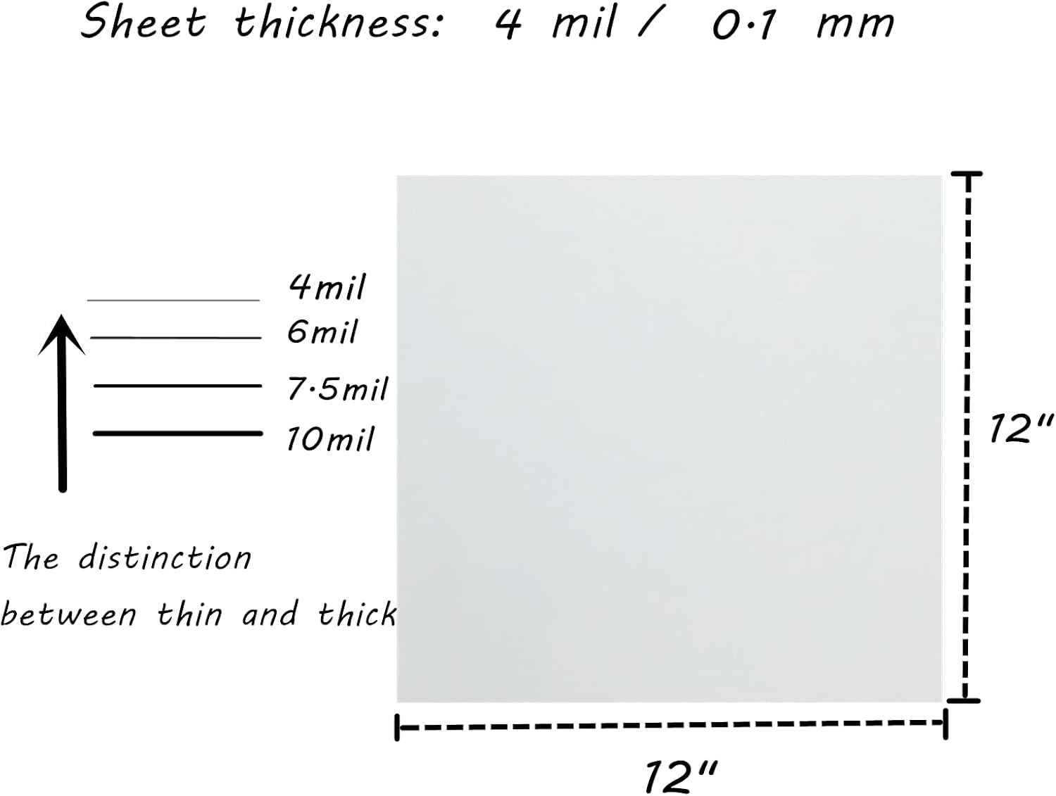 - The thickness of these square plates plastic sheet is 4 mil / 0.1mm, which is very easy to cut and does not damage the blade. It is light, washable and reusable.