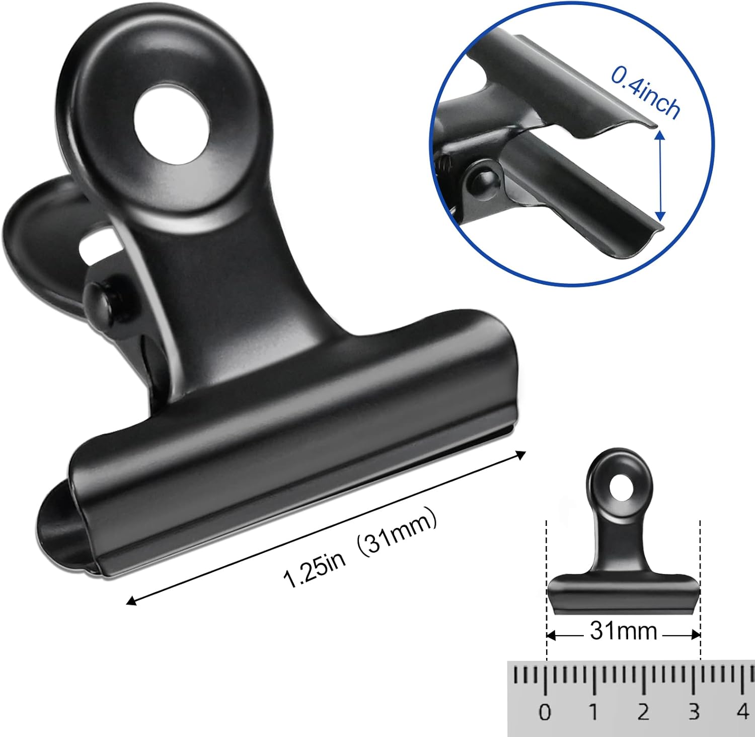 30 Pack Bulldog Clips 1.25 Inches Small Hinge Paper Clips Metal Hinge Clips for Crafts, Food Bags, Drawings, Photos at Home Kitchen & Office Usage, Black, 31mm