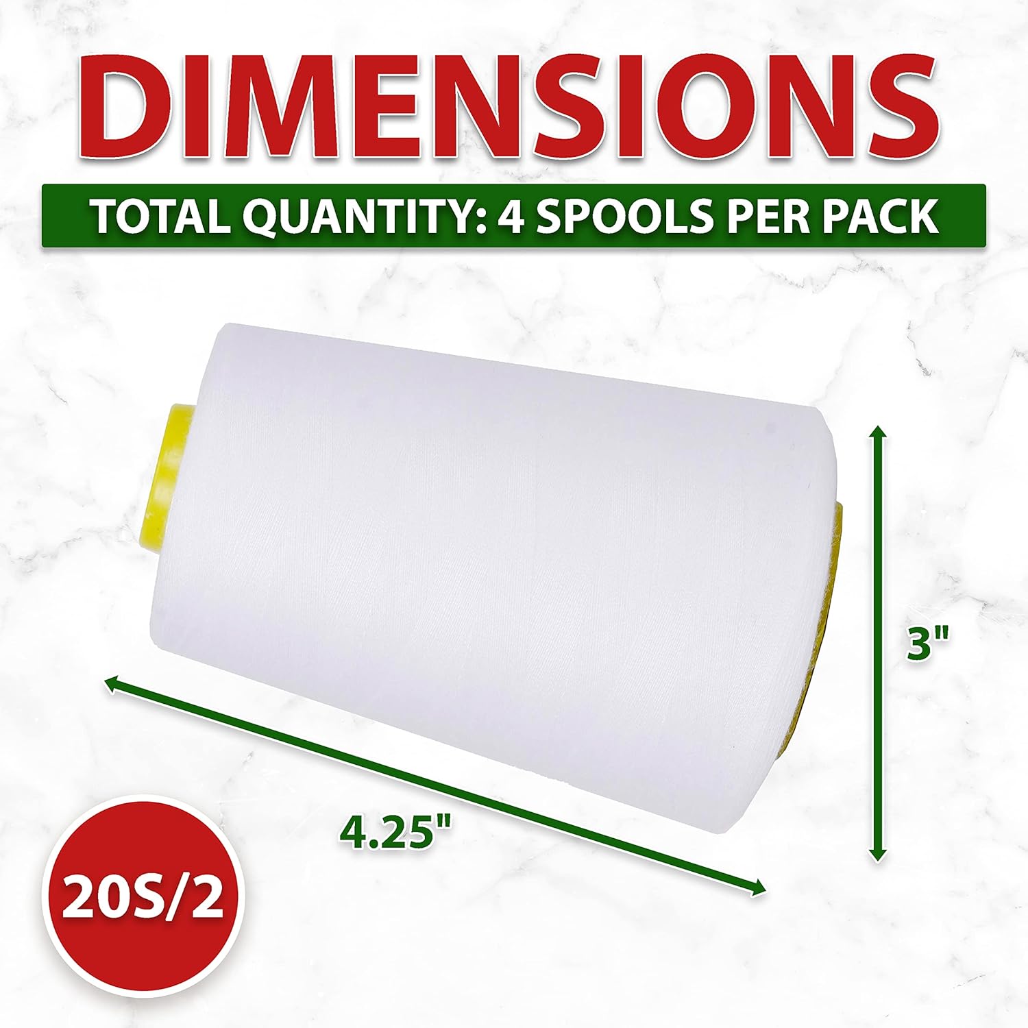 Mandala Crafts 4 Pack of Serger Threads Cones Spools - 20S/2 24000 Yards Polyester White Threads for Sergers Machine and Overlock Quilting Sewing Machine