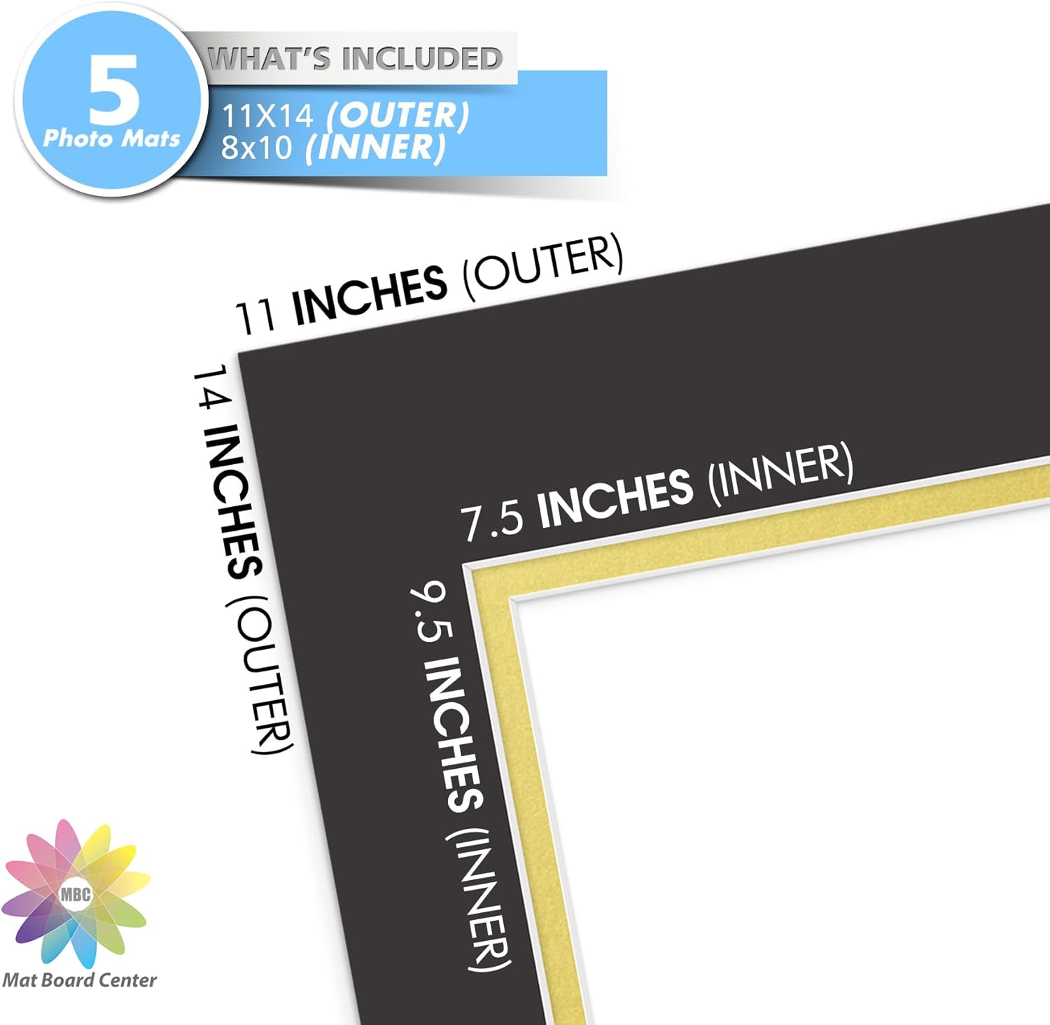 Mat Board Center, Double Mat - Acid Free, 8-ply Thickness, White Core - for Pictures, Photos, Framing (Black Over Gold, 11x14 for 8x10, Pack of 5)