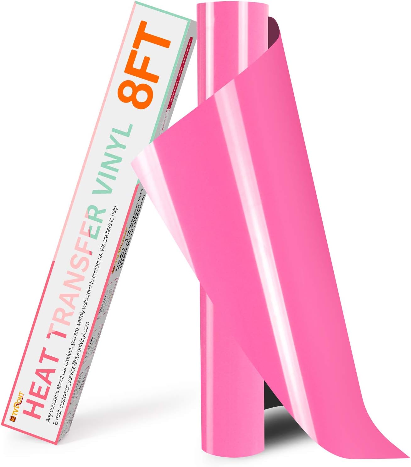 HTVRONT HTV Vinyl Rolls Heat Transfer Vinyl - 12" x 8ft Pink HTV Vinyl for Shirts, Iron on Vinyl for All Cutting Machine - Easy to Cut & Weed for Heat Vinyl Design (Pink)
