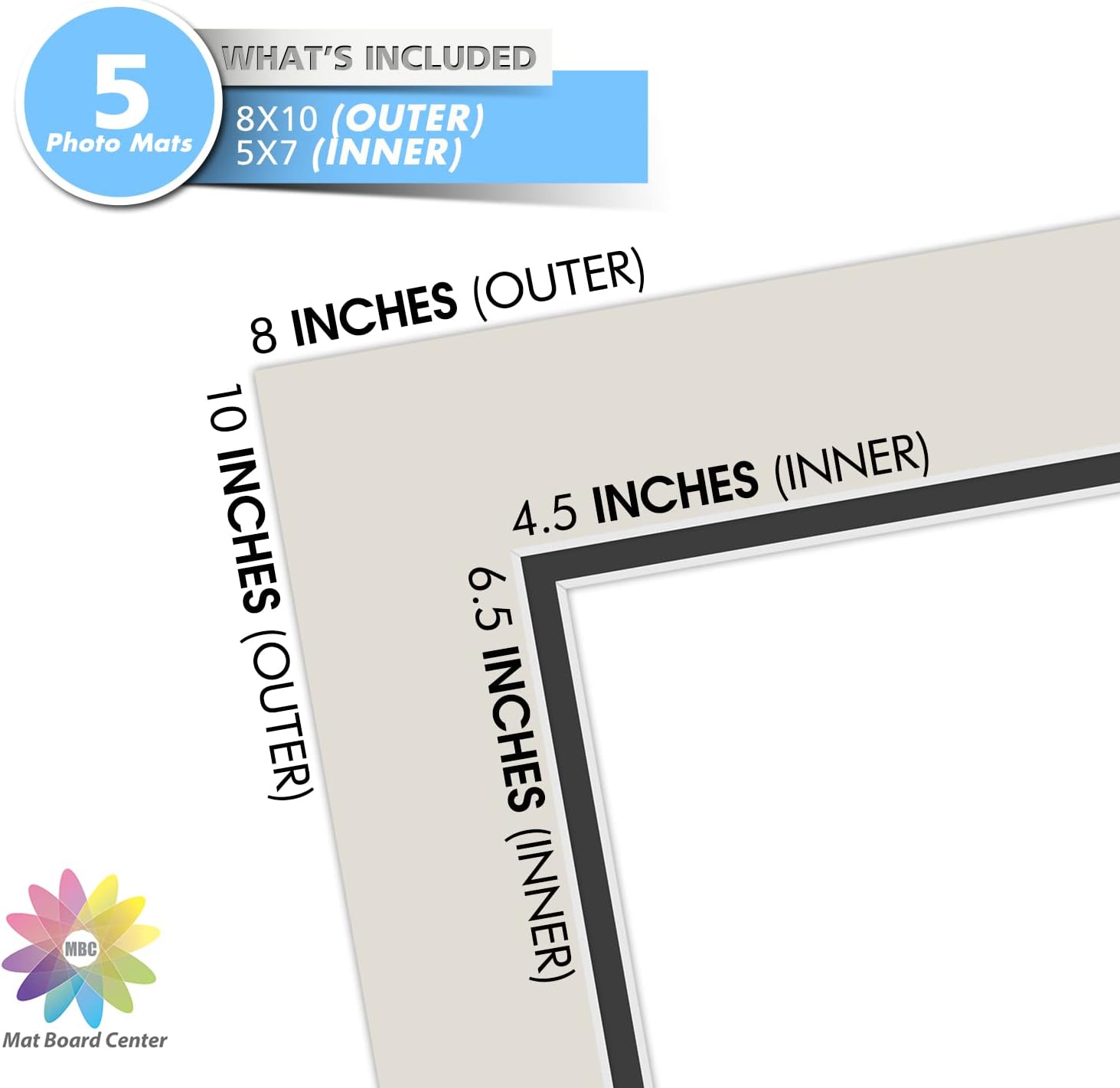 Mat Board Center, Double Mat - Acid Free, 8-ply Thickness, White Core - for Pictures, Photos, Framing (Gray Over Black, 8x10 for 5x7, Pack of 5)