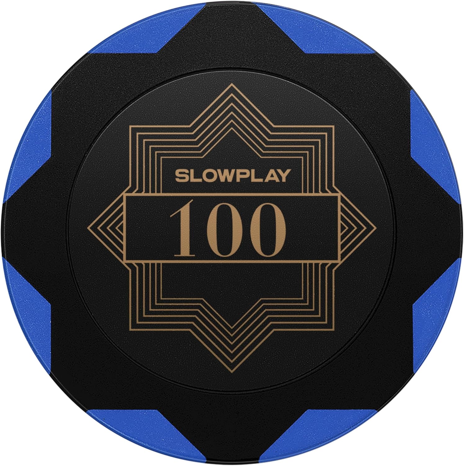 SLOWPLAY Nash Clay Poker Chips, 14 Grams Heavyweight Clay Composite, 40mm Large Chips in Bulk, Pack of 50 with Denomination of 100