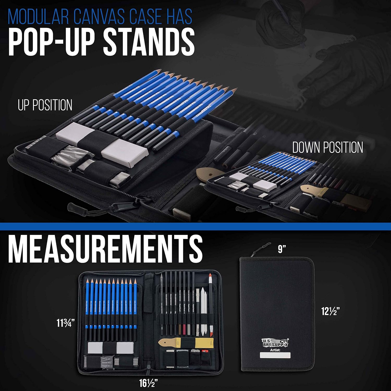 - Complete 44-piece professional drawing and sketching art set that includes every tool and sketch pad you need to create amazing sketches! The zippered carrying case has all the tools conveniently stored in an elevated pop-up organizer providing easy access to them!