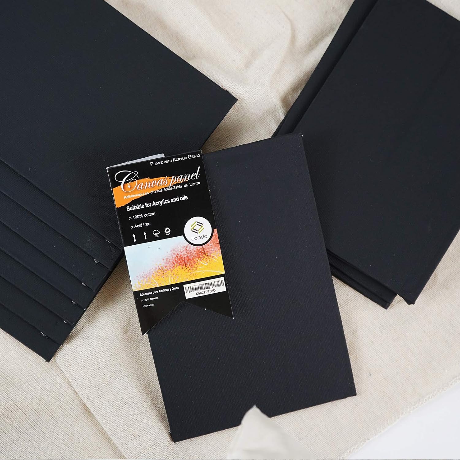 CONDA Black Canvases for Painting 9x12 inch, Pack of 14, 100% Cotton Acid-Free, 8 oz Gesso-Primed, Canvas Panels, Art Boards for Oil & Acrylic Painting