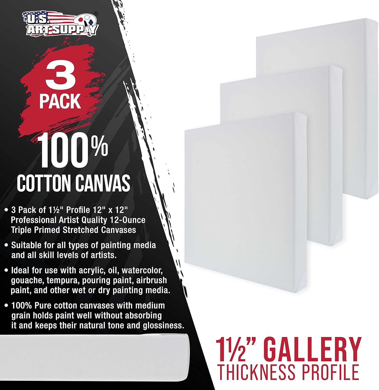 U.S. Art Supply Square Stretched Canvas for Painting 12x12 inch Gallery Depth 1-1/2" Thick, 3-Pack - 12oz Acrylic Gesso Triple Primed, Professional Artist Quality, 100% Cotton - Pouring, Oil Paint