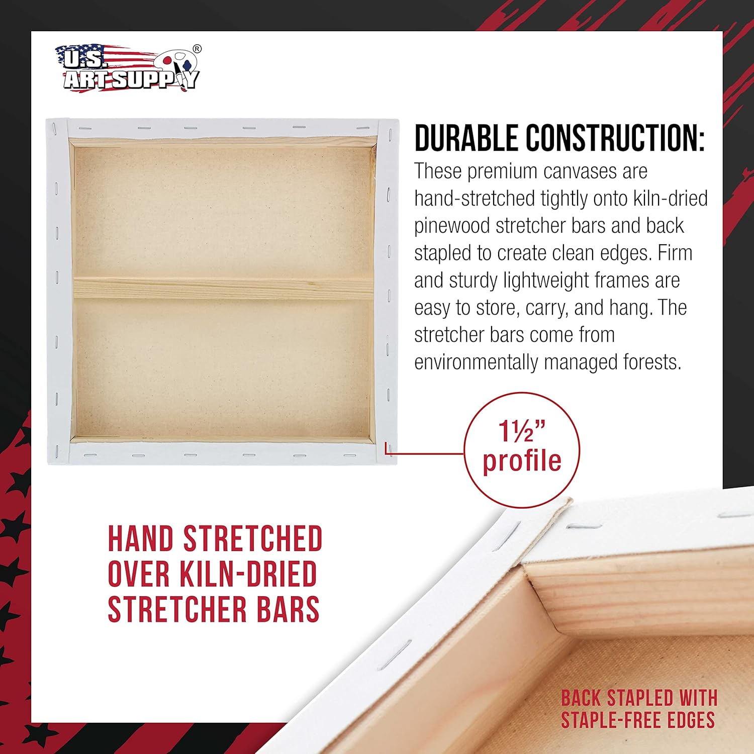 - Professional Artist Quality: 1-1/2" Gallery depth thickness profile 12-ounce triple primed stretched wrapped art canvases that are suitable for all types of painting media and all skill levels of artists. Ideal for use with acrylic, oil, watercolor, gouache, tempura, pouring paint, airbrush paint, and other wet or dry painting media.
