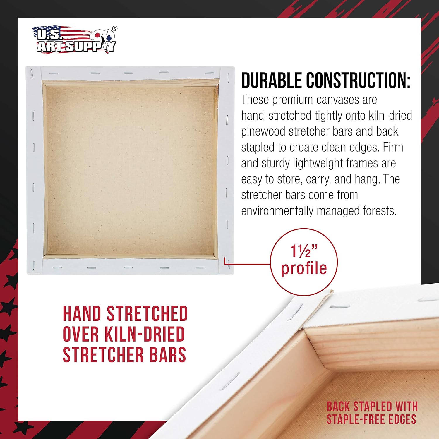 - Professional Artist Quality: 1-1/2" Gallery depth thickness profile 12-ounce triple primed stretched wrapped art canvases that are suitable for all types of painting media and all skill levels of artists. Ideal for use with acrylic, oil, watercolor, gouache, tempura, pouring paint, airbrush paint, and other wet or dry painting media.