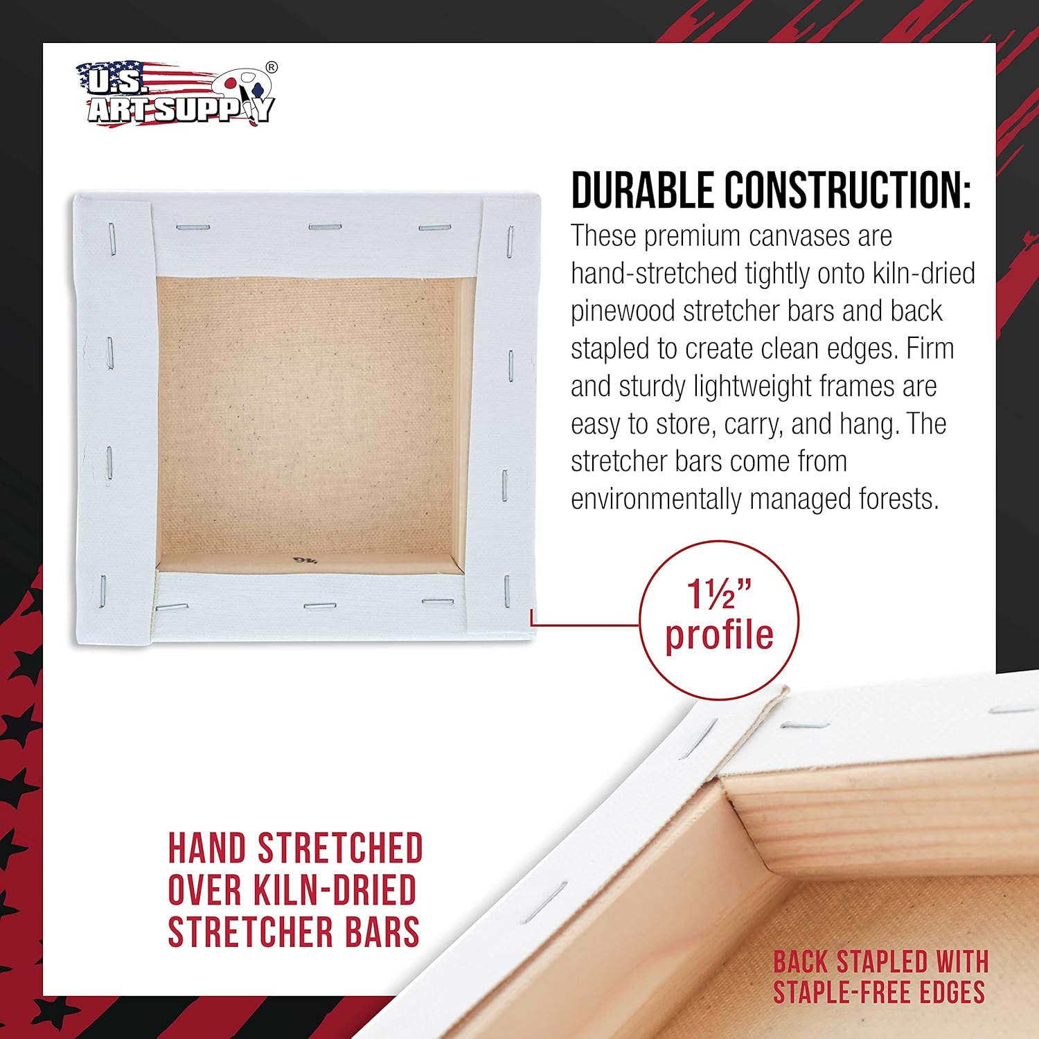 - Durable Construction: These premium blank square canvases are hand-stretched tightly onto warp resistant kiln-dried pinewood stretcher bars and back stapled to create clean edges, makes a beautiful framed canvas. Firm and sturdy lightweight frames are easy to store, carry, and hang. The stretcher bars come from environmentally managed forests.