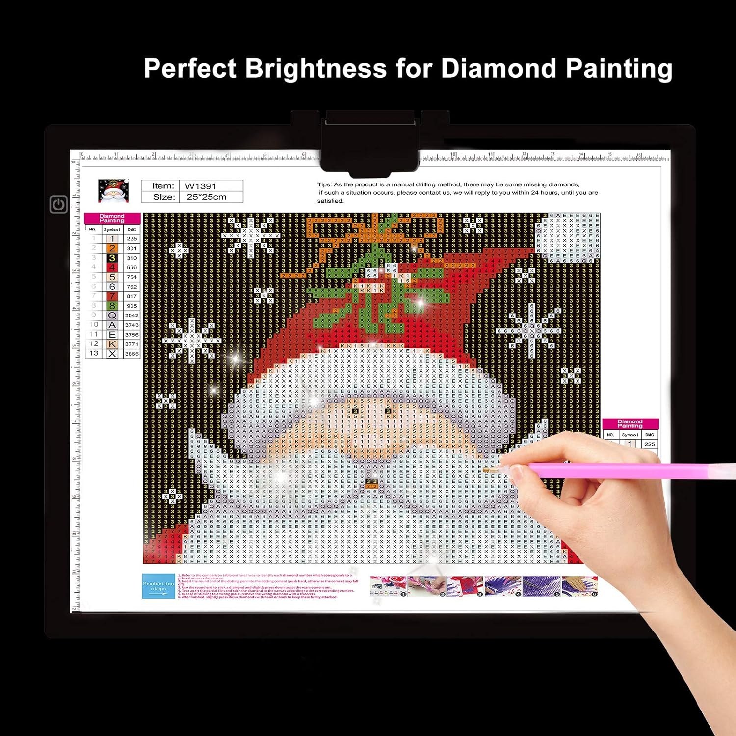 Diamond Painting Light Pad A3, LED Light Box Tracer w/Magnetic Clip & Pen Holder, 3 Level Brightness USB Power Dimmable Brightness Artcraft Tracing Light Pad for Drawing Sketching Diamond Painting