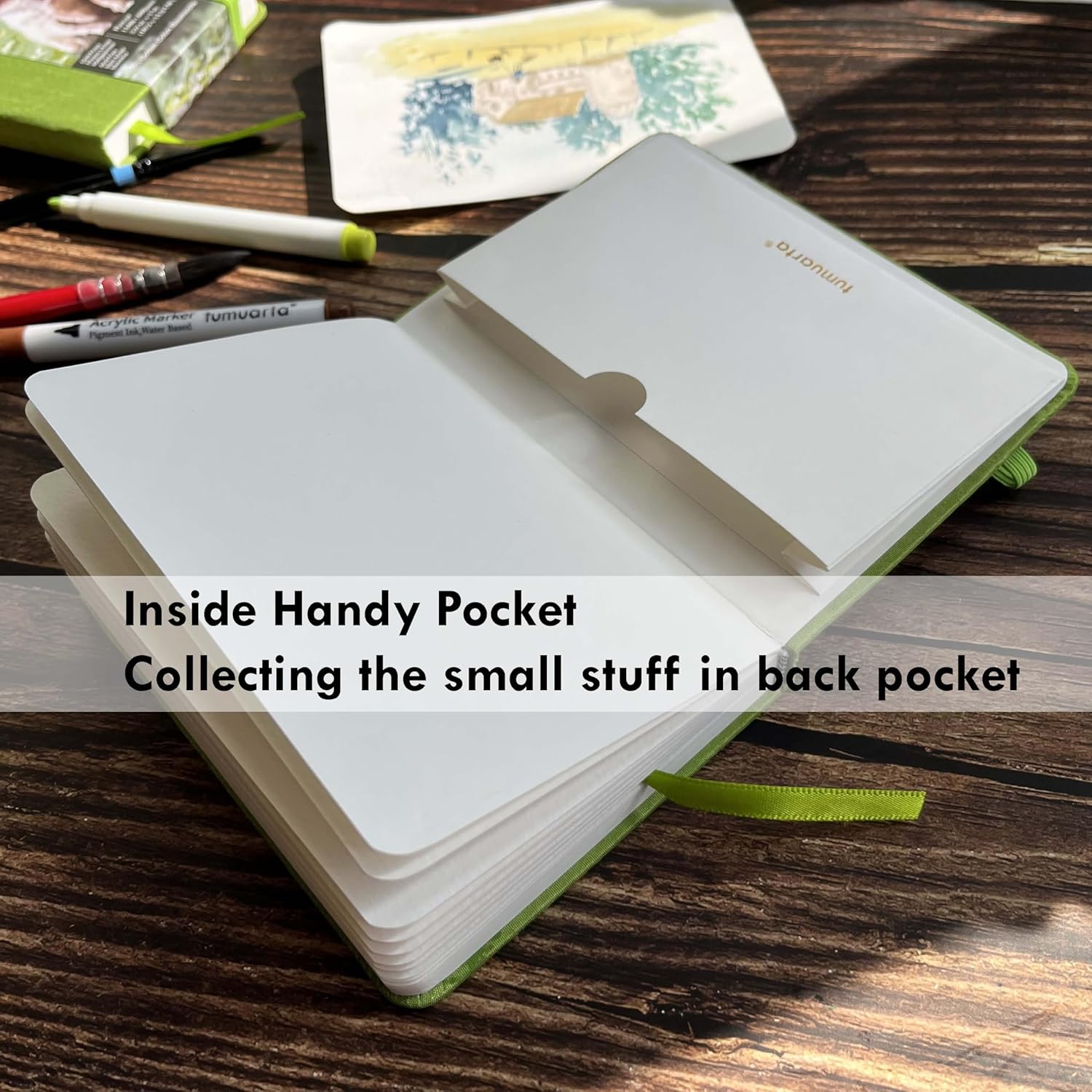 tumuarta Square Watercolor Journal, 5.5x5.5”, 140 LB, 300 GSM, Cotton Paper, Cold Press, 24 Sheets, 48 Pages, Watercolor Paper SketchBooks for Use As Mix Media Pad On The Go