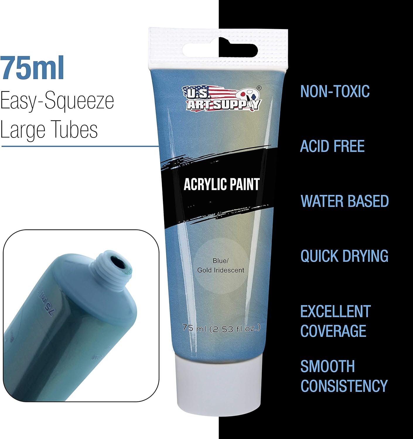 - 12 High-Quality, Vivid Iridescent Paint Colors in Extra Large 75ml (2.53 fl. oz.) Tubes: A full selection of 12 unique, eye-catching vibrant water-based iridescent acrylic paint colors allow you to create stunning vivid masterpieces. U.S. Art Supplies superior performing artist acrylic paints will bring your artwork to life. They're used by professional artists and the young aspiring artist.