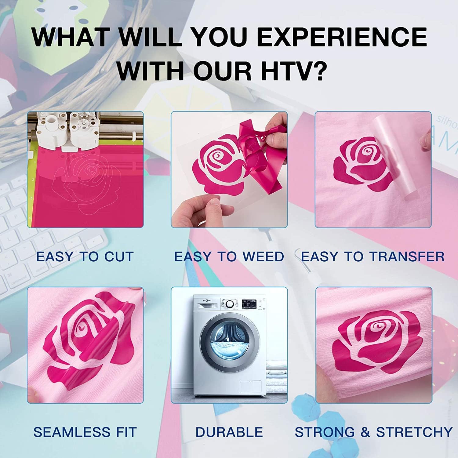 - 【EASY TO CUT WEED TRANSFER】Our premium quality heat transfer vinyl will save time which you may waste on each image or letter, because you can cut and weed easily through the designs just right. The iron on vinyl is sensitive to temperature and pressure, which can be heat transferred to any t-shirt easily. Before cutting, make sure the blade is clean and sharp, so that your design can be cut well and weeding can be done better