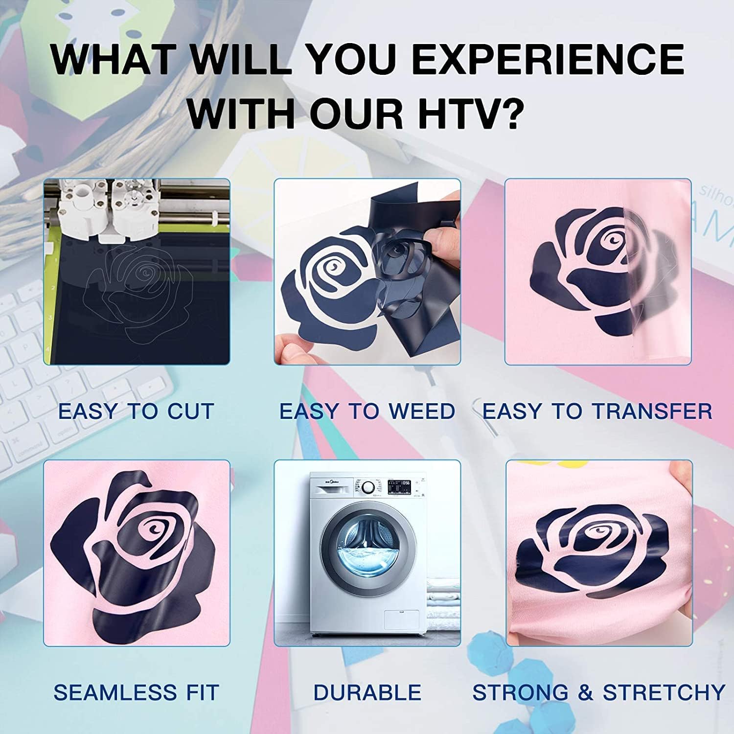 - 【EASY TO CUT WEED TRANSFER】Our premium quality heat transfer vinyl will save time which you may waste on each image or letter, because you can cut and weed easily through the designs just right. The iron on vinyl is sensitive to temperature and pressure, which can be heat transferred to any t-shirt easily. Before cutting, make sure the blade is clean and sharp, so that your design can be cut well and weeding can be done better
