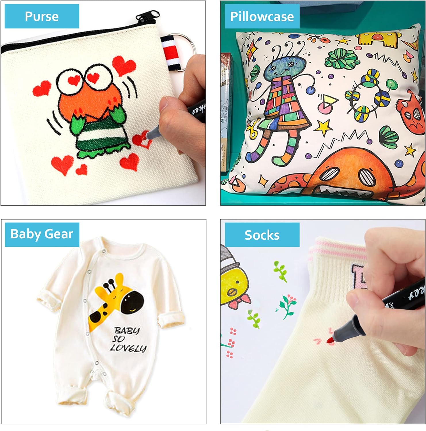 - VERSATILE USES: Premium quality fine tip fabric markers work on all type of light-colored fabrics like T-shirts, canvas, socks, hats, bags, baby gears and more. It’s really a great art and craft supplies for kids!