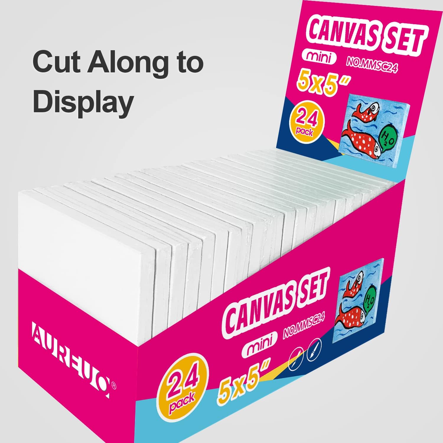 AUREUO Mini Stretched Canvas - 5x5 Inch/24 Pack - 2/5 Inch Profile Small Square Canvas - Gift Set Bulk Pack Canvases for Acrylic Painting & Craft