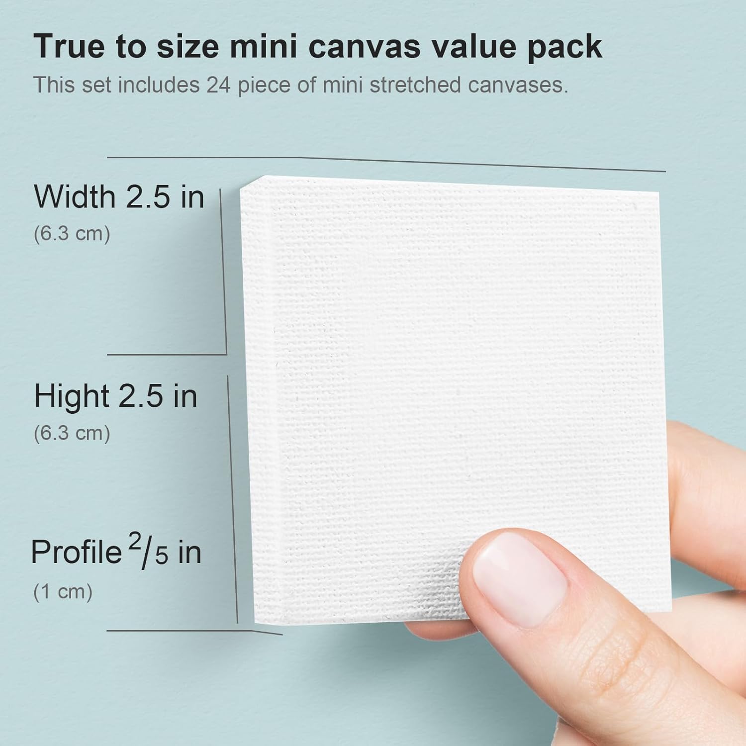 AUREUO Mini Stretched Canvas - 2.5x2.5 Inch / 24 Pack - 2/5 Inch Profile Small Square Canvas - Gift Set Bulk Pack Canvases for Acrylic Painting & Craft