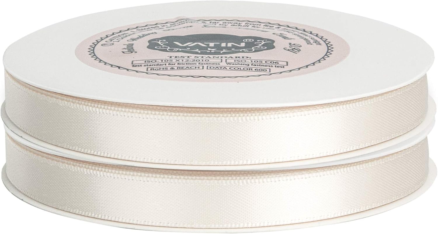 VATIN Double Face Cream Satin Ribbon 3/8" Continuous 50 Yards,Cream Polyester Fabric Ribbon use for Bows Bouquet, Gift Wrapping, Floral Arrangement Wedding Decoration