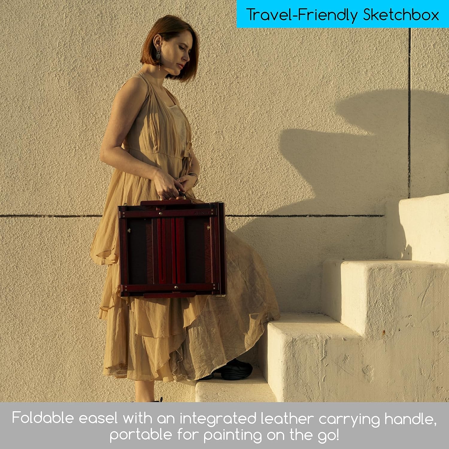 MEEDEN Studio Sketchbox Table Easel with Metal Lined Drawer - Adjustable Solid Beech Wood Tabletop Easel & Sketchbox Artist Easel with Storage, for Studio or Plein Air - Holds Max 34", Walnut