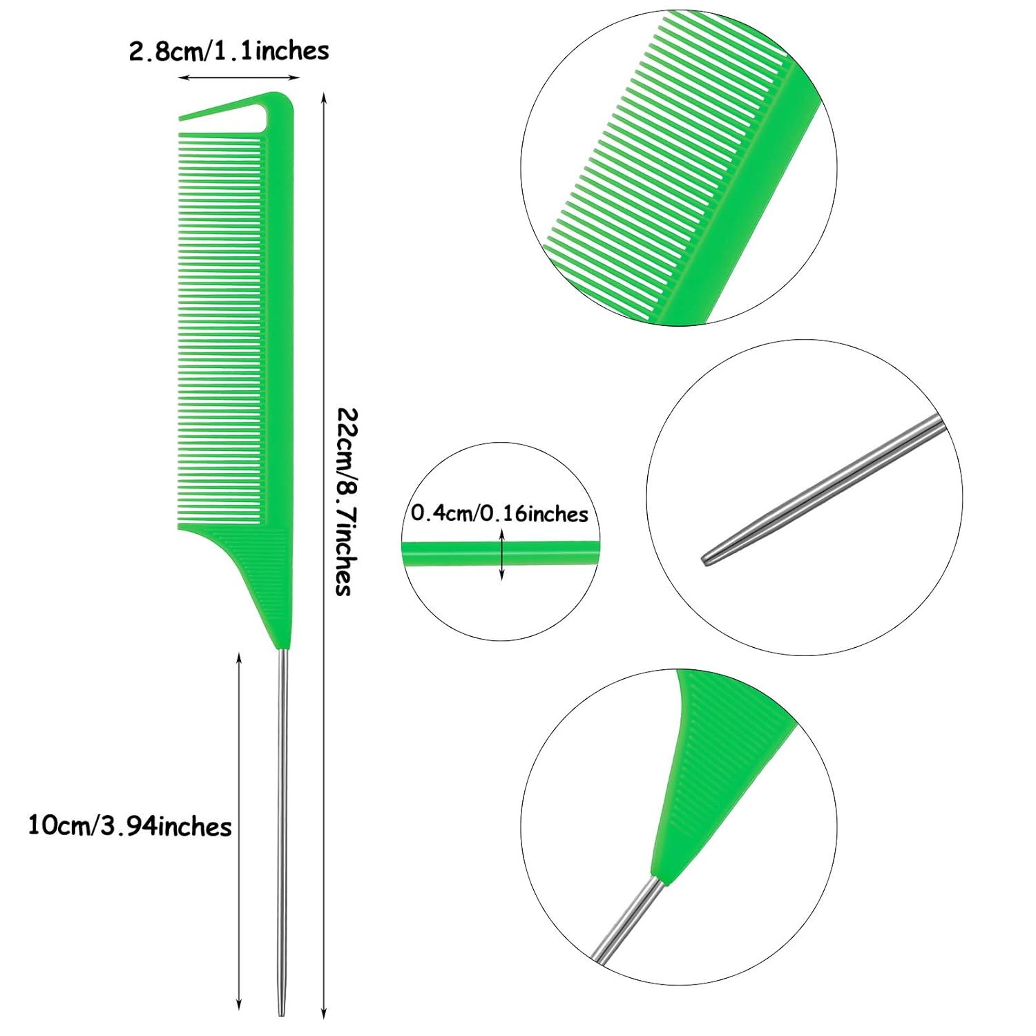 - Rat tail handle design: the rat tail combs are designed with a long and thin stainless steel pintail, which is practical for styling, parting, back combing, enough for you to apply in daily life and meet your replacement needs, suitable for salon, barber and cosmetic supply kits