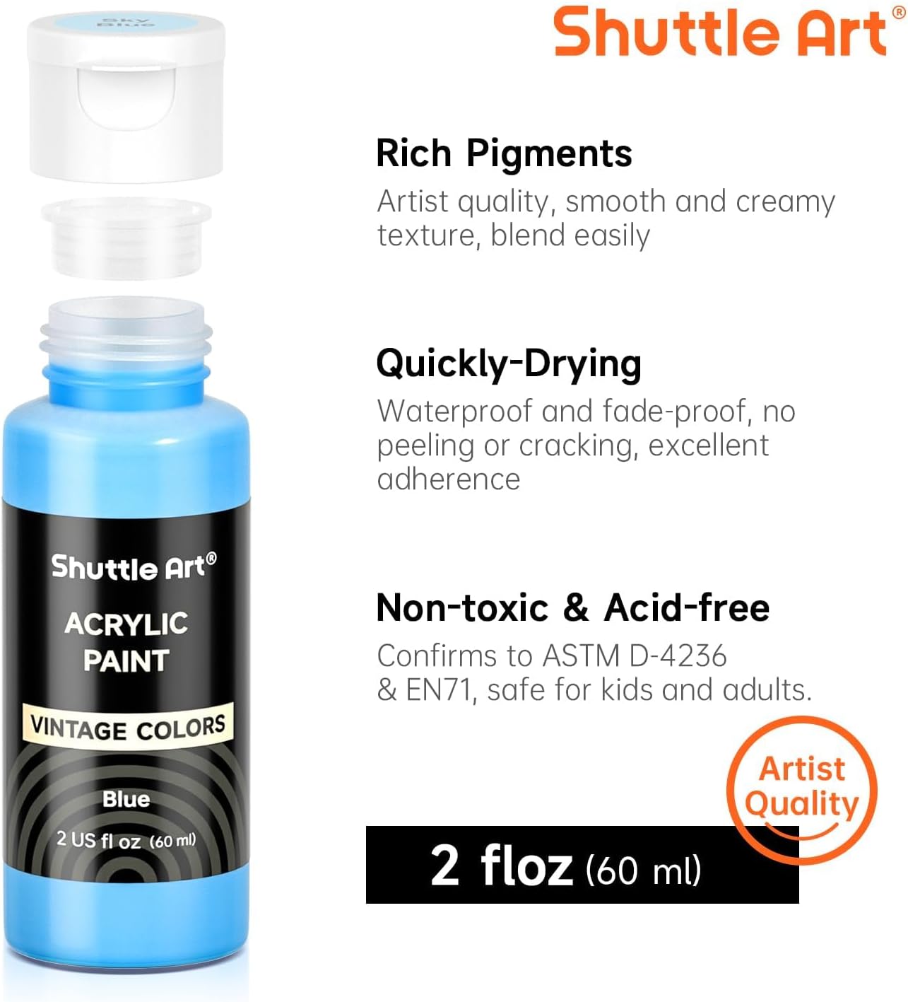 Shuttle Art Acrylic Paint Set, 25 Vintage Colours, 2oz/60ml Bottles, Rich Pigmented, Premium Acrylic Paints for Artists, Beginners and Kids on Rocks Crafts Canvas Wood Ceramic