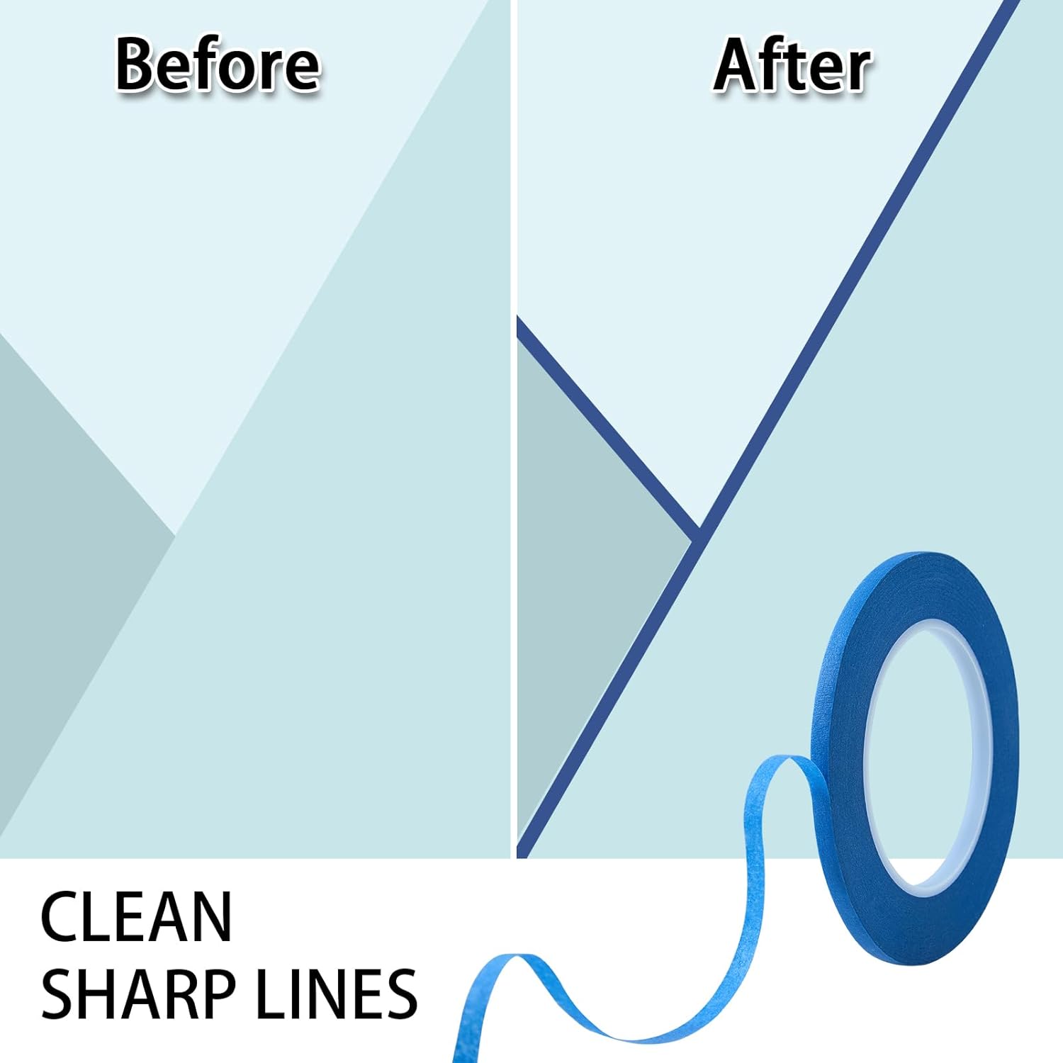 2 Pack 1/4" inch x 60yd Blue Painters Tape Easy Removal Thin Narrow Finishing Masking Tape Painting Tape Wall Tape, No Residue and Good Adhesive (0.25 in 6MM)
