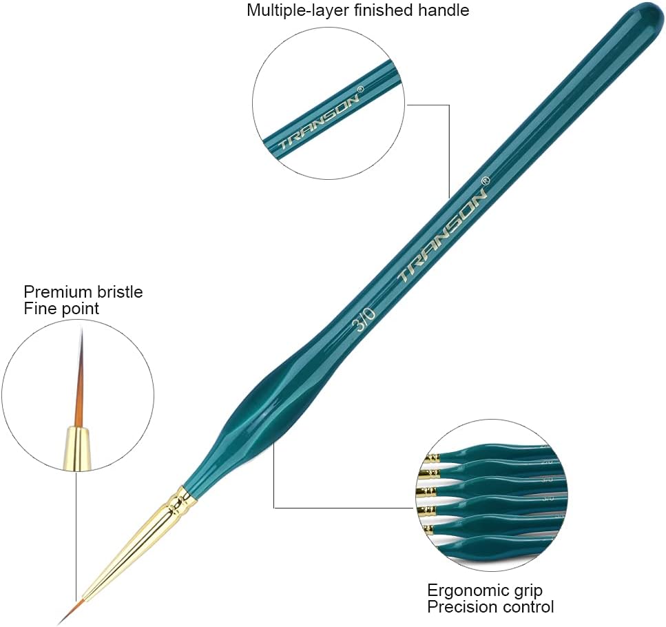 - Transon detail paintbrush set including 20/0, 10/0, 5/0, 3/0, 0. (no exaggerating size numbers) Extra fine tip, great for intricate detail work, model, miniature, micro painting.