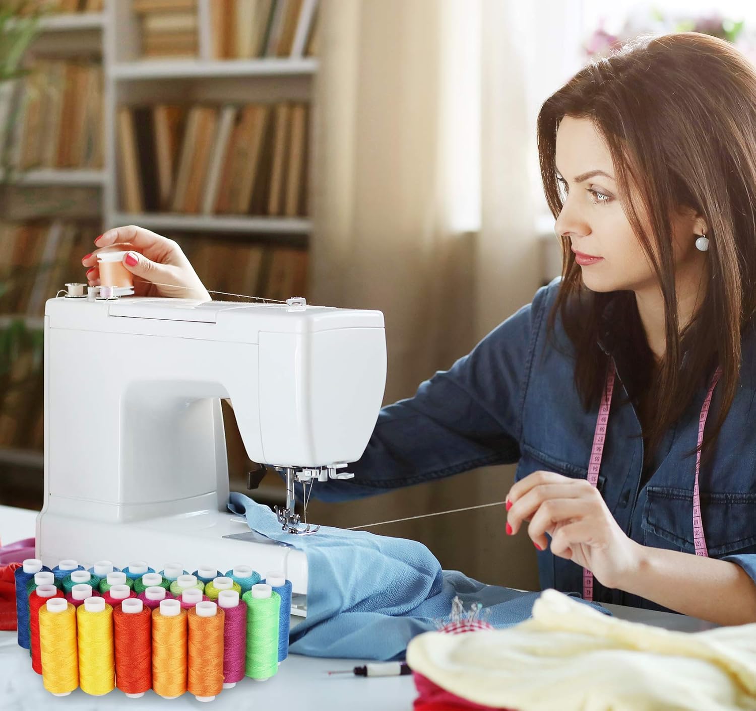 - ❤Full Set of 116 Pcs: 100 kinds of colors sewing thread,10 sewing needles, 2 needle threaders, 1 yarn scissors, 1 stripper, 1 set pearl needle, 1 cardboard storage box. Standard spool size fits Brother, Singer, JUKI, JANOME thread holders—ready to use, no extra adapters needed.