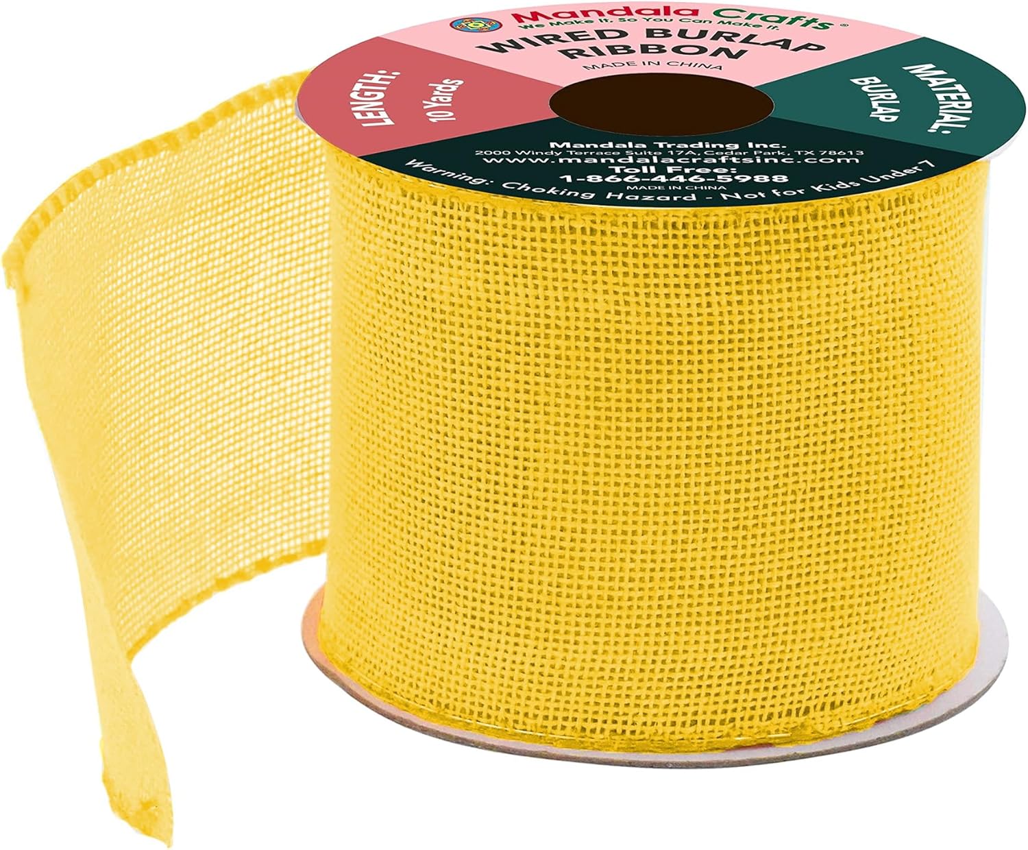 Mandala Crafts Yellow Burlap Wired Ribbon 3 Inches Wide Jute Ribbons for Crafts - 10 Yds Roll Rustic Burlap Wrap Trim Ribbons for Wreaths Bows Party Decoration