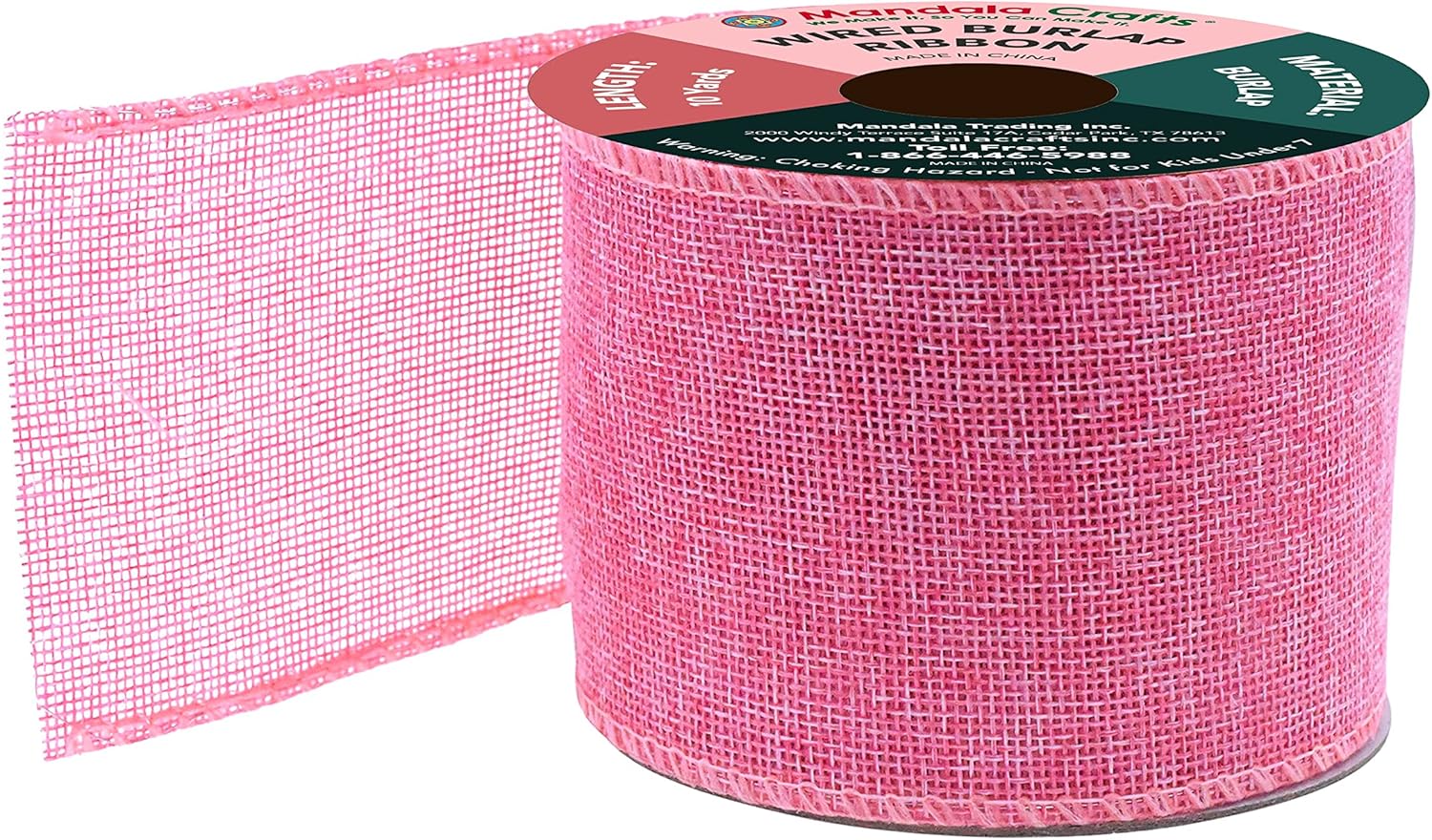 - Burlap Pink Wired Ribbons for Wrapping, DIY, Scrapbooking, & Floral Arrangement: The wired rustic ribbon is the ideal colored burlap fabric for garlands, bows, flowers, cards ornaments & curtain tiebacks and gift wrapping ribbon for boxes & baskets.