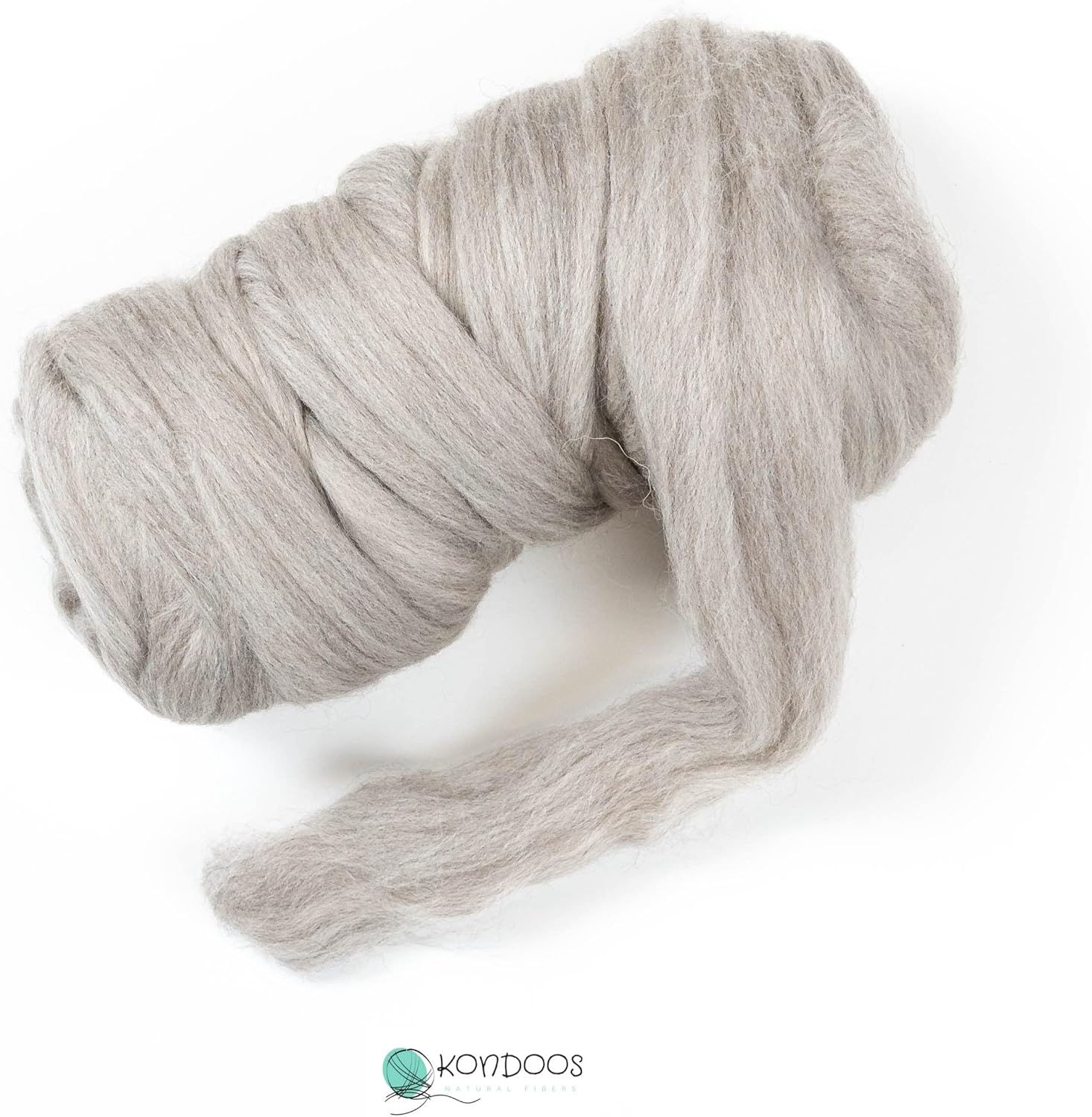 Natural Wool roving, 8 OZ. Best for Needle Felting, handcrafts and Spinning. Natural Colours, un-Dyed. (Gray Sand, 8 oz)