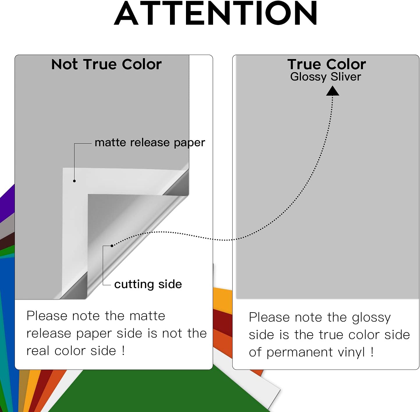 - π VIVID COLOR & GREAT BRAND SERVICE π We stand by the quality and versatility of our permanent vinyl.Your satisfaction is our NO.1 priority.If you are not satisfied our silver vinyl sheets, please feel free to let us konw, and we will provide you a satisfied solution. In this permanent adhesive vinyl starter pack, you can choose different colors (glossy/matte black vinyl, glossy/matte white vinyl and other colors). And each permanent vinyl bundle contains 2 pieces of transfer paper.