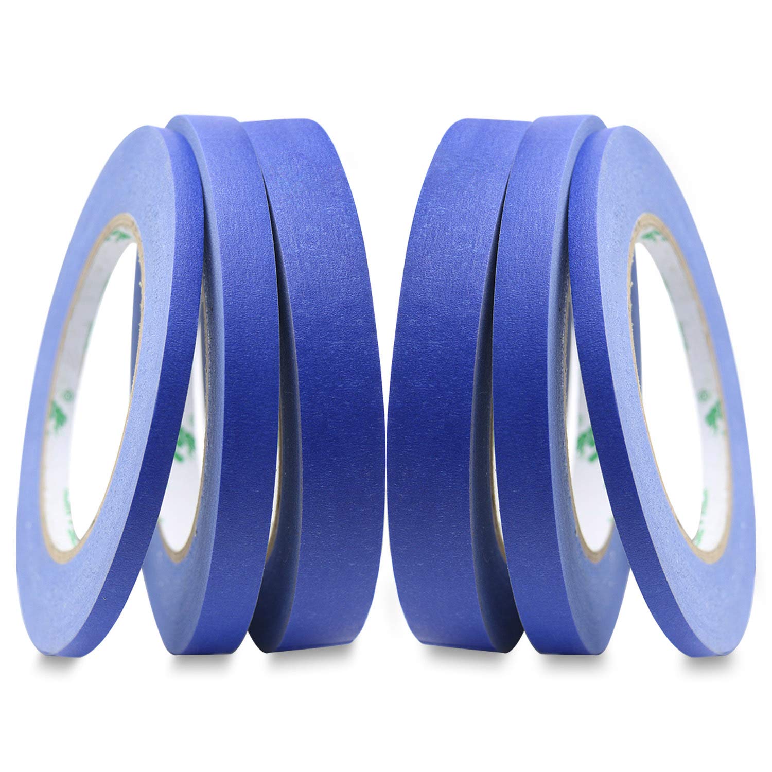 BOMEI PACK 6Pack Blue Painters Masking Tape, 1/4” 1/2” 3/4” X 60yds Multi Size Painting Paper Tape, Clean Removal with No Residue