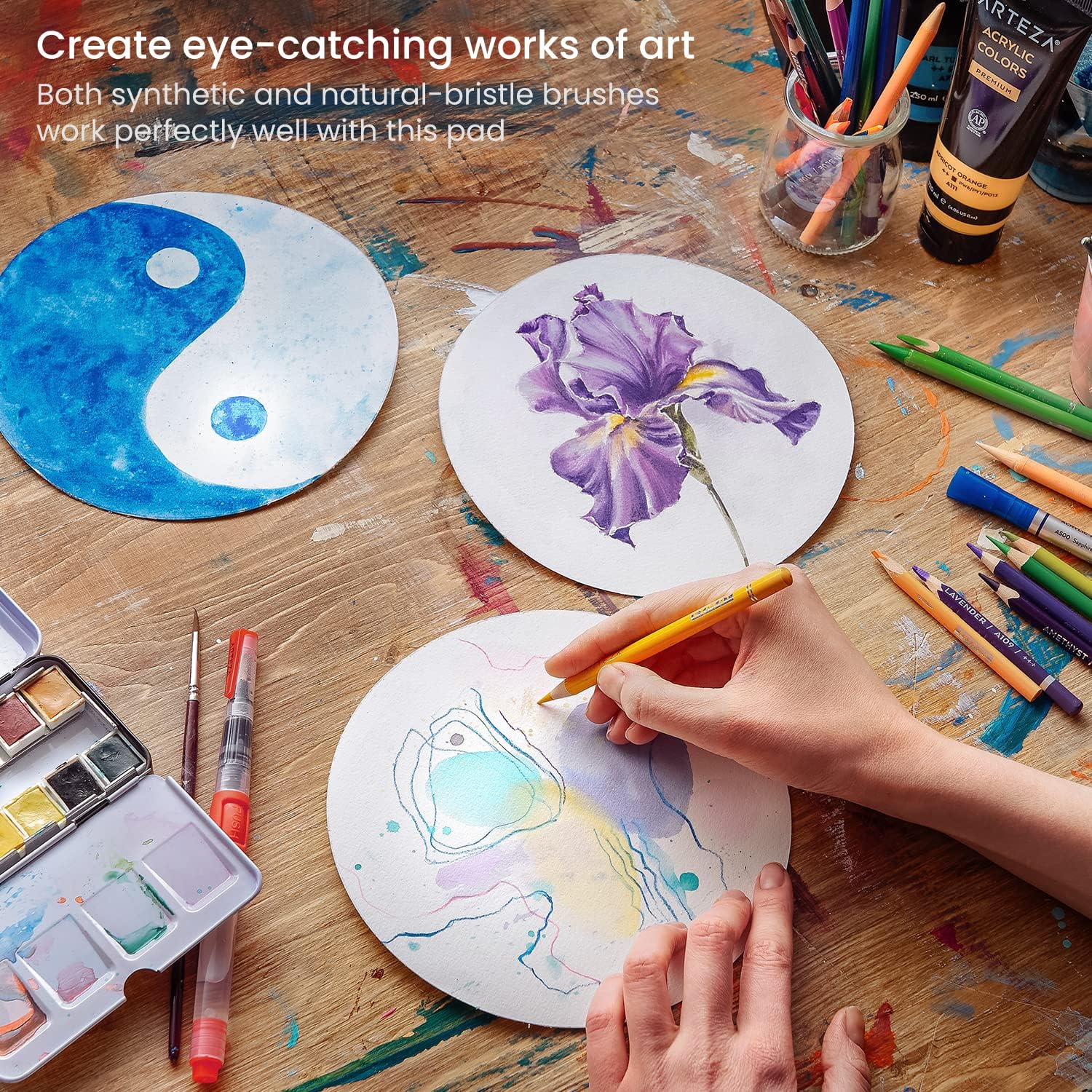 ARTEZA Watercolor Paper, 20 Sheets, 7 Inch Diameter Round Paper Pads, 140lb/300gsm, 100% Cotton, Cold Press, Acid Free Art Paper