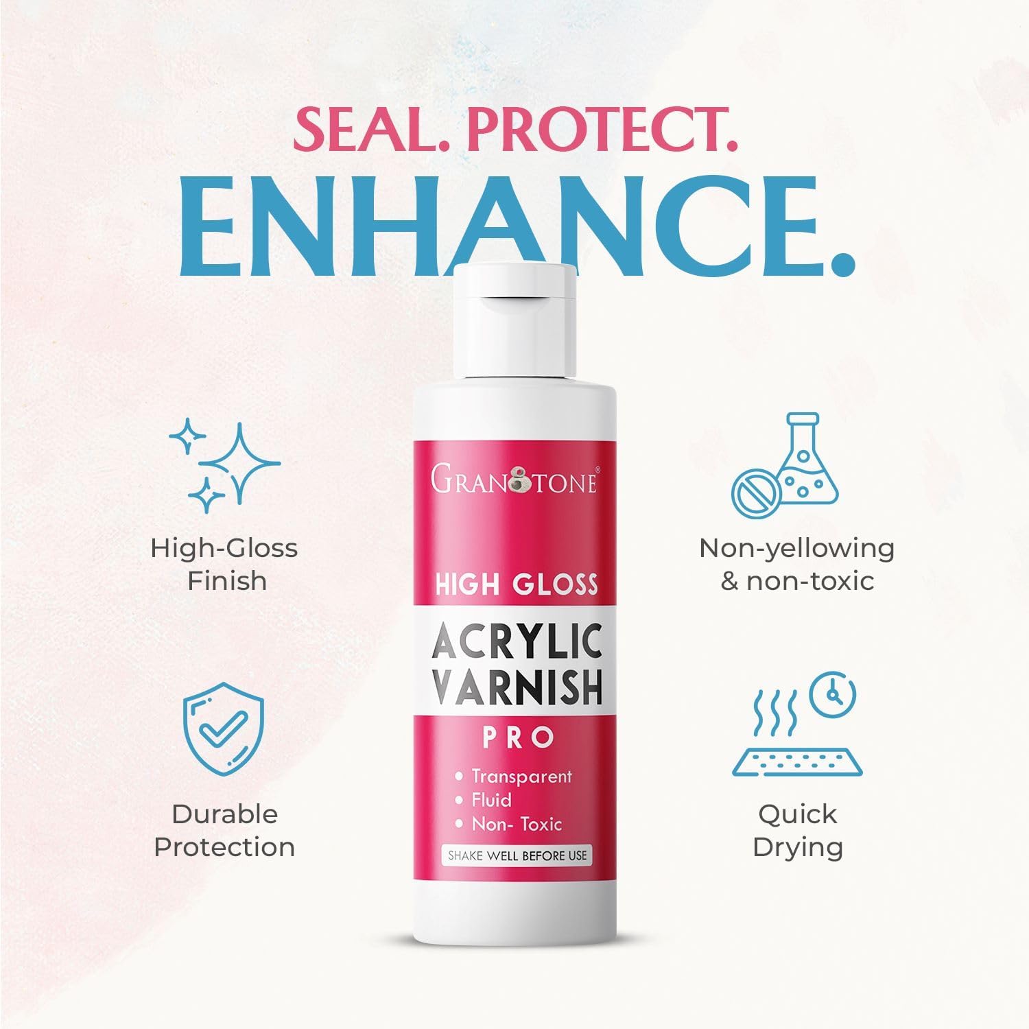 GRANOTONE Acrylic Artist's Varnish | High Gloss Finish | Non-Yellowing | Non-Toxic | Anti-Crazing | for Pro Artists, Hobby Painters & Kids | Made in India | 200 ML (6.76 fl oz)