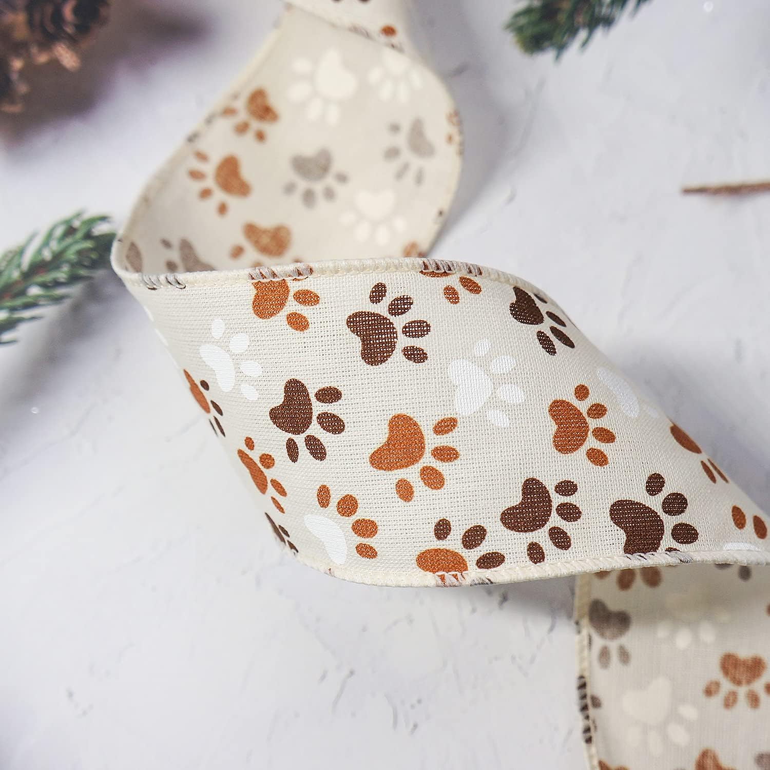 - EASY TO USE - The 10-yard long ivory canvas dog paw wird ribbon 2.5" is enough for all the decorating and accenting your DIY Crafts. The ivory canvas dog paw wird ribbon 2.5" is easy to use and won’t tangle. It can be tied or glued on gift packages and DIY craft projects such as car and chair bow, wreath, flower bouquet.