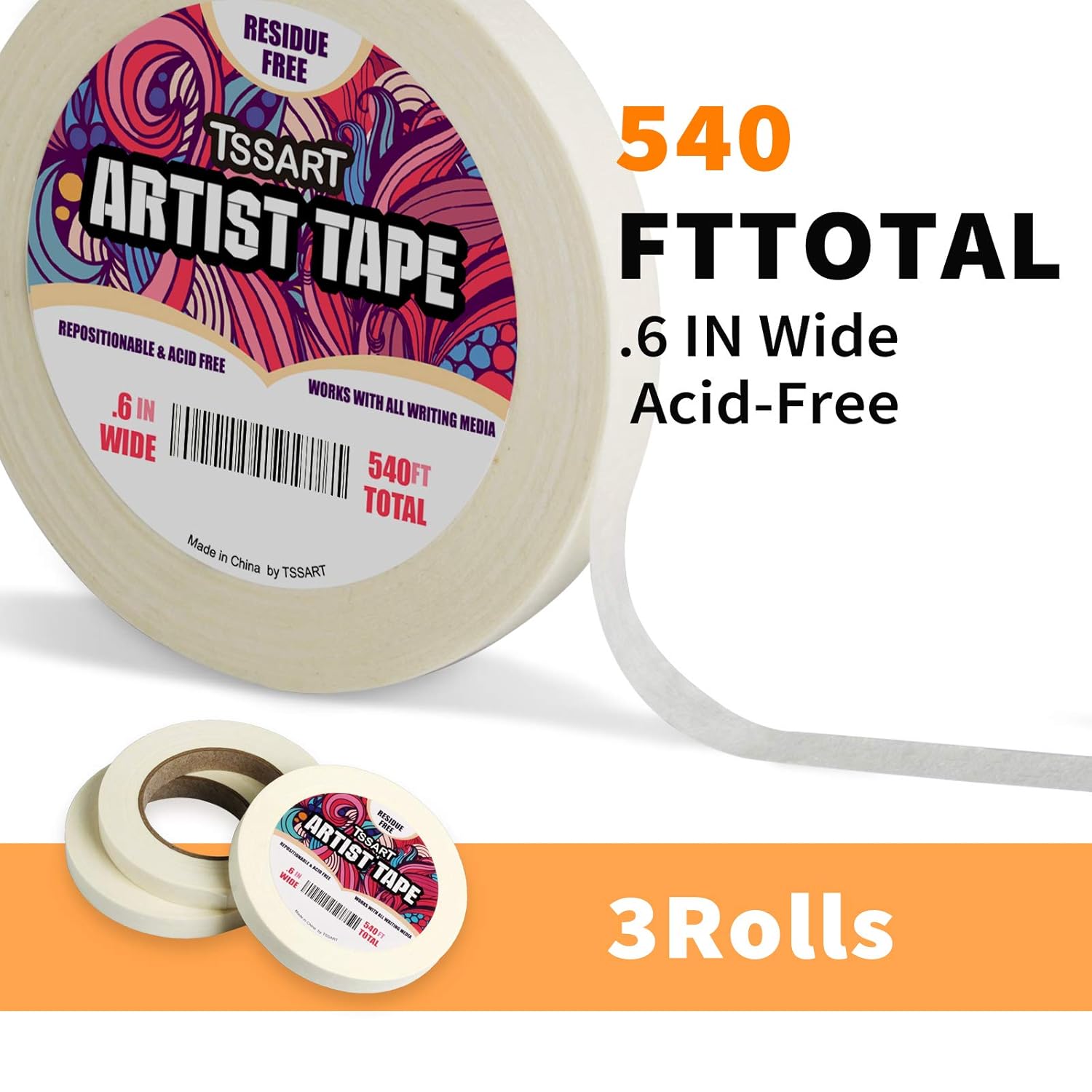 3 Pack White Artist Tape - Masking Artists Tape for Drafting Art Watercolor Painting Canvas Framing - Acid Free 0.6inch Wide 540FT Long Total