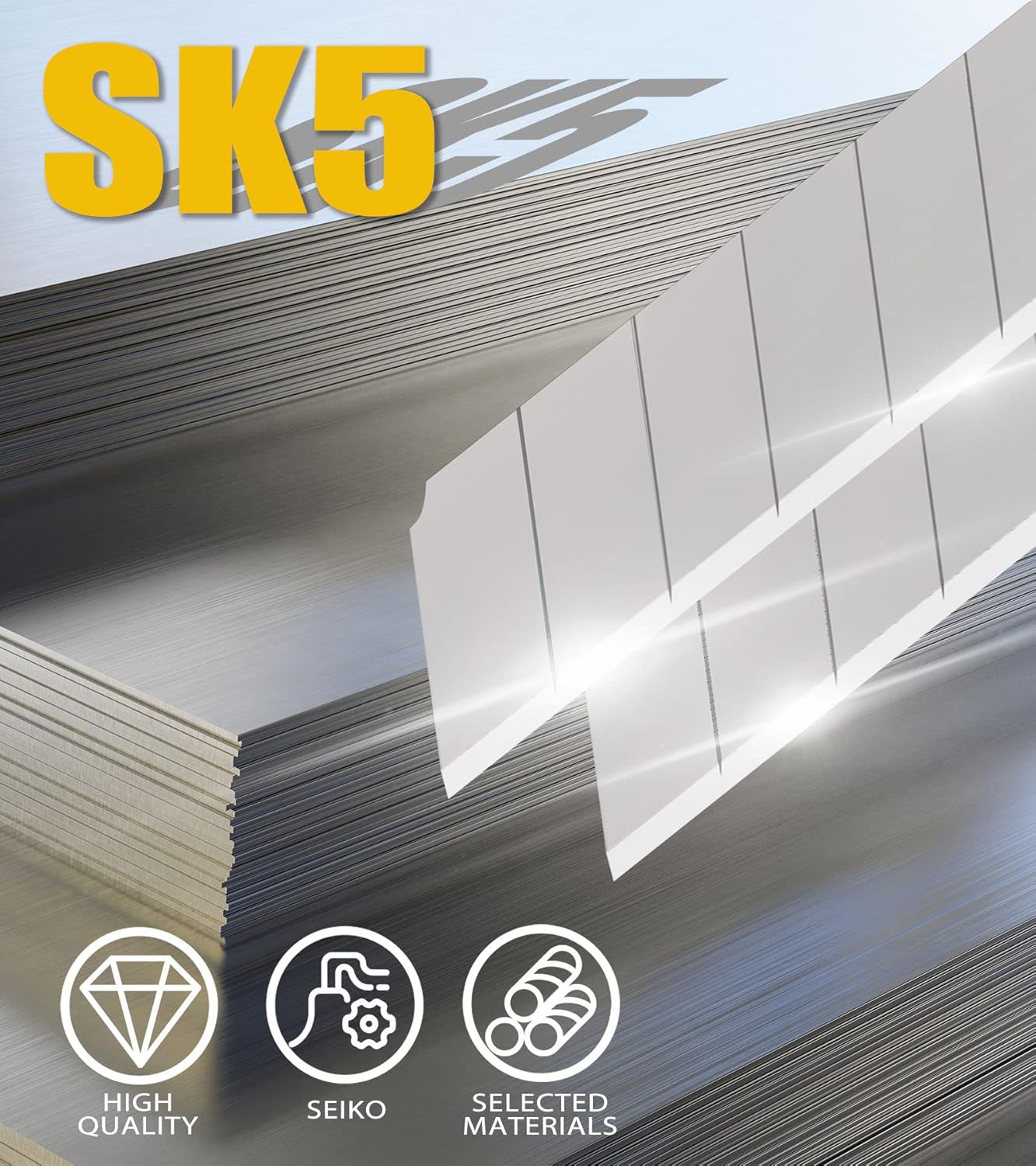 DOWELL 18mm Snap Off Blade SK5 Utility Knife Retractable Blades Box Cutter Blades (100pc)
