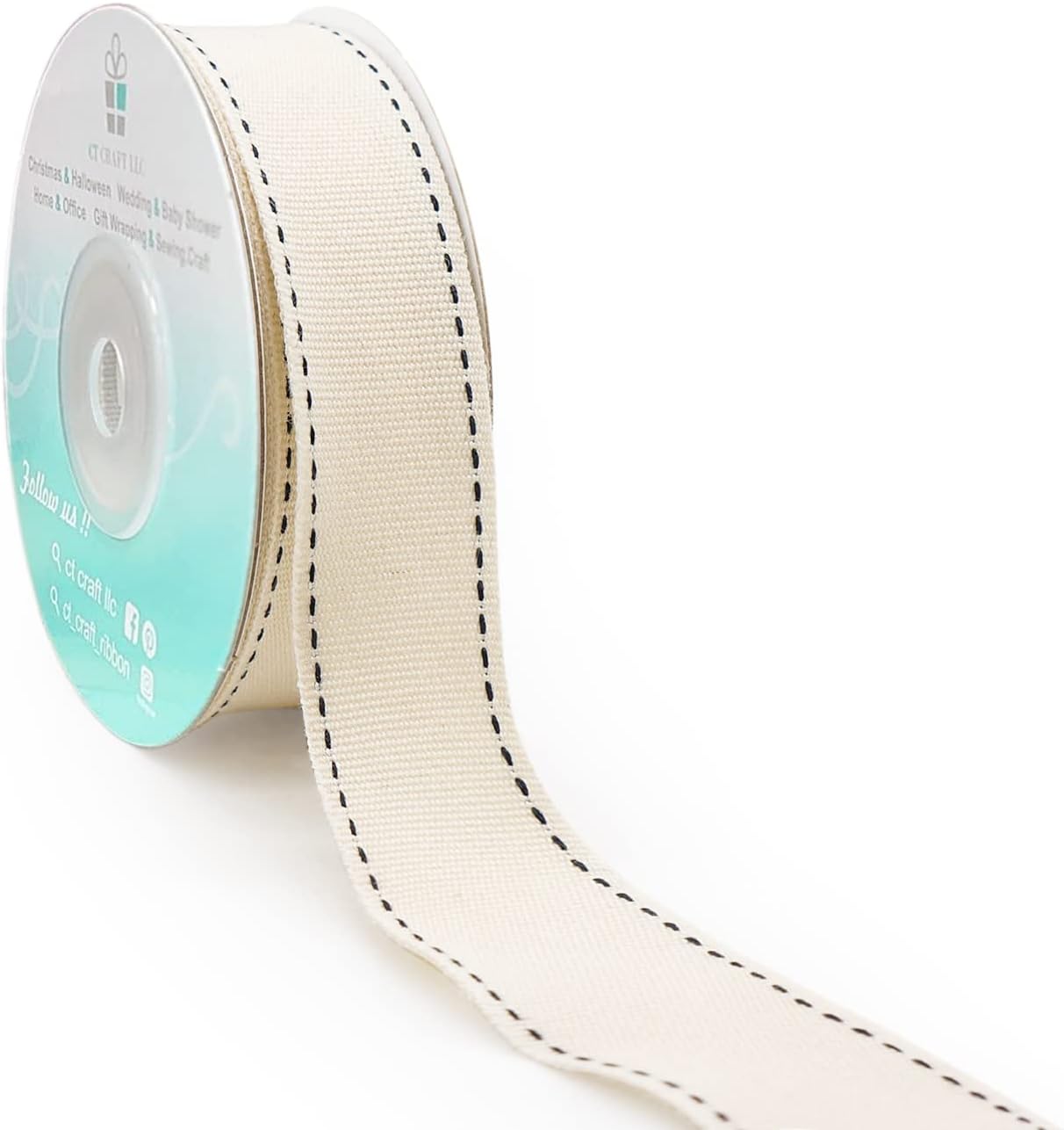 - EASY TO USE - The 10-yard long Ivory Cotton Black Stitched Ribbon 7/8" is enough for all the decorating and accenting your DIY Crafts. The Ivory Cotton Black Stitched Ribbon 7/8" is easy to use and won’t tangle. It can be tied or glued on gift packages and DIY craft projects such as car and chair bow, wreath, flower bouquet.