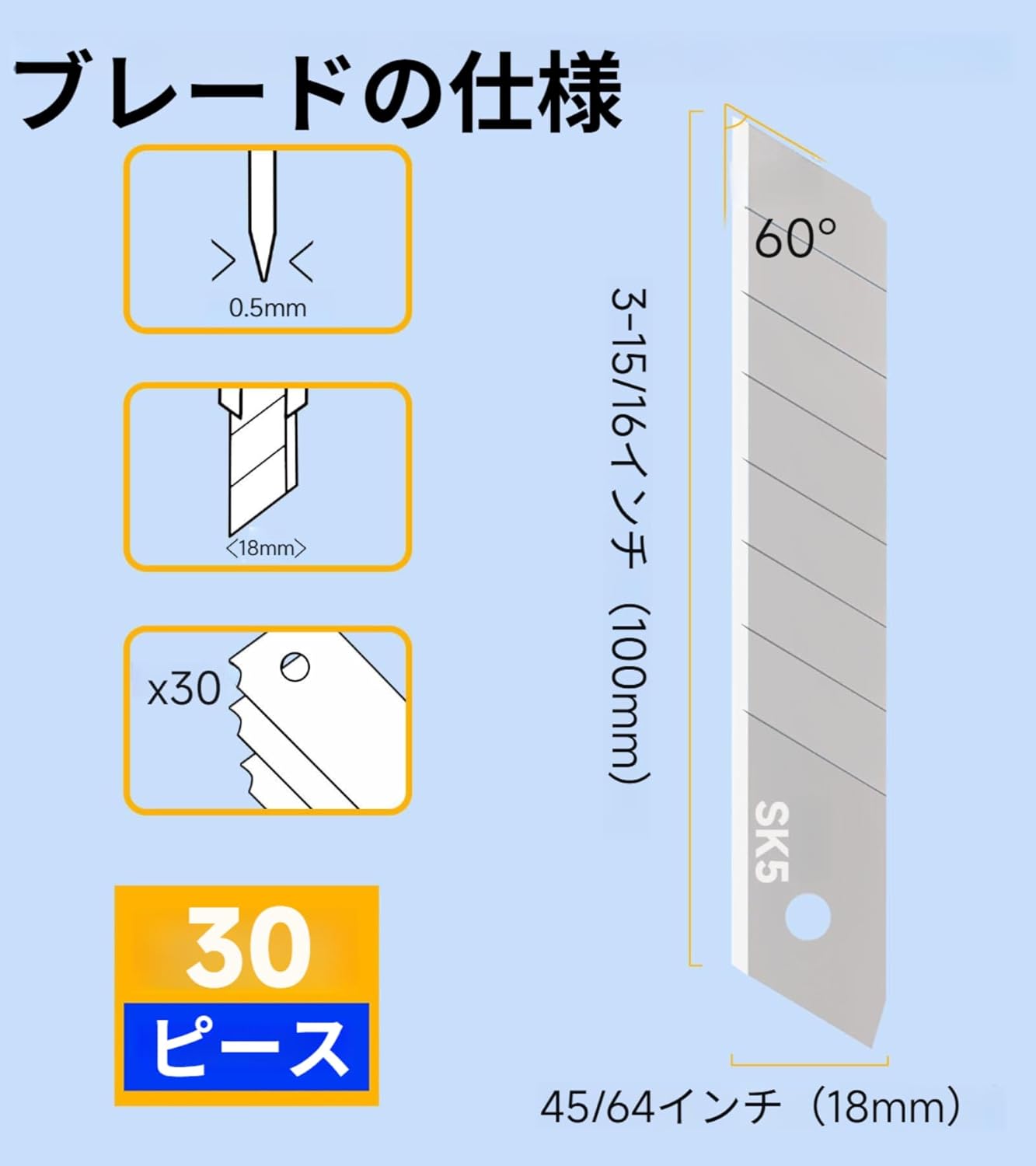 DOWELL 18mm Snap Off Blades SK5 Utility Knife Retractable Blades Box Cutter (30pcs)