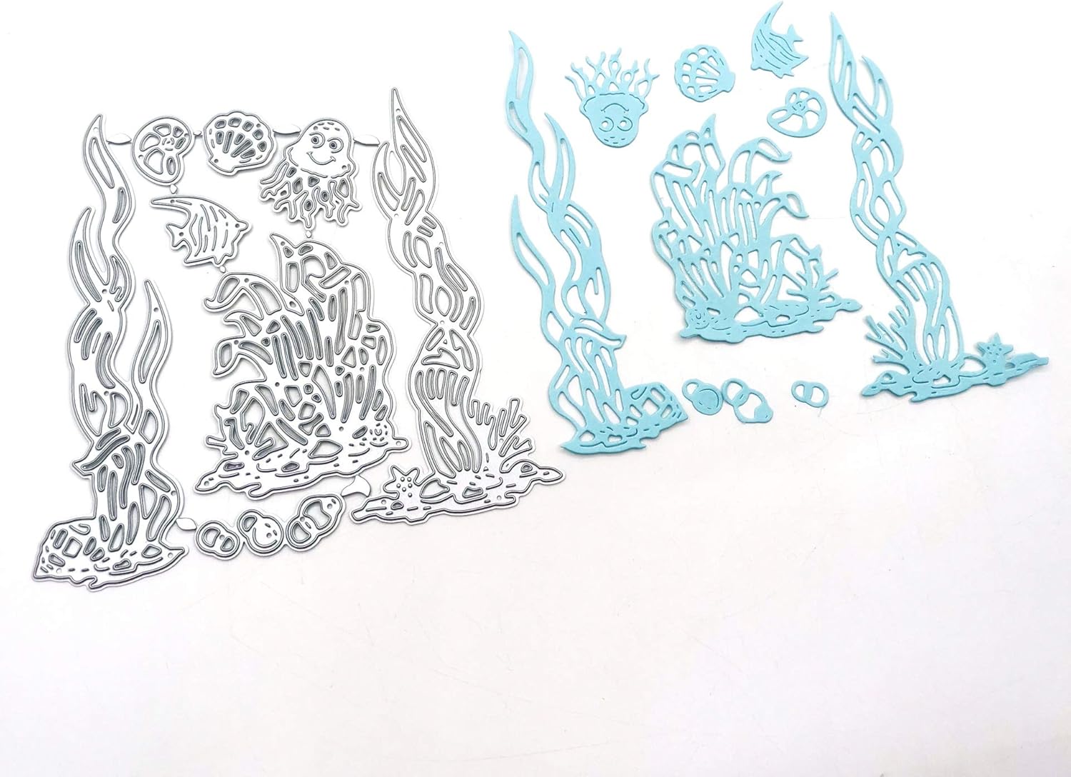 Metal Sea Grass Seaweed Coral Tropical Fish Cutting Dies,Jellyfish Shell Fish Conch Ocean Die Cuts Summer Embossing Stencils Template Mould for Card Scrapbooking and DIY Craft Album Paper Card Decor