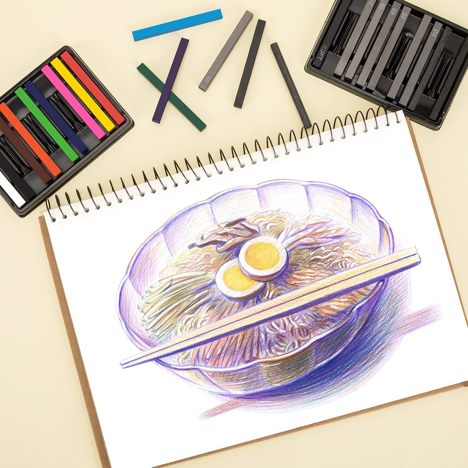 - Drawing supplies set is provided with 12pcs soft pastels, 3pcs vine charcoal (soft medium hard), 3pcs compressed charcoal sticks (soft, medium, hard) and 6pcs graphite sticks (2H HB 8B 6B 4B 2B)