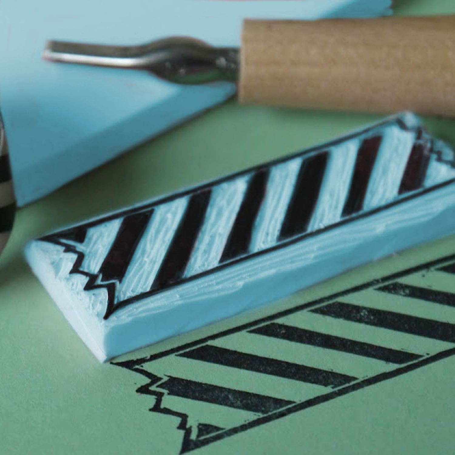 - Blue RUBBER BLOCK SET - The soft linoleum block stamp for rubber stamps kit size 4 x 6 x 0.3 inches and is available 20 pieces to choose from.